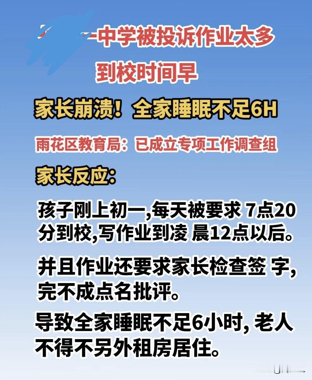 #MCN双量进阶计划#又有家长怒投诉!孩子刚上初一,每天写作业熬到12点后,完不成还挨批,全家睡眠不足6小时,老人不得不另外租房住,这事戳中无数家长痛点。 家长吵翻了天,支持投诉的家长喊冤,“睡眠都保证不了,哪来精力学习?纯纯折磨娃和家长,作业量必须减”; 也有家长反驳,“做作业是本分,完不成还上学?取消月考期中,家长根本摸不清孩子学习情况”。 周少觉得作业是巩固知识的手段,不是负担;考试是检验效果的方式,不是压力。合理把控作业量、保留适度考核,既不让娃熬夜透支,也让家长掌握学习动态,才能平衡学习与成长。 对于这样的情况,大家觉得该减负还是恢复考试?#寻美三湘# #长沙新朋友#