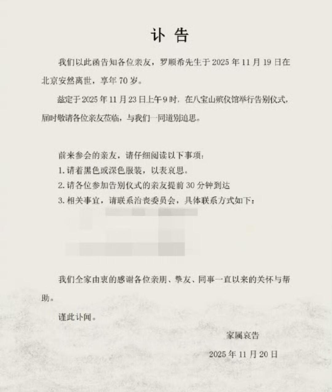 娱乐圈突传噩耗,知名演员罗晋的父亲去世!罗晋经纪人于11月20日在朋友圈代发讣告