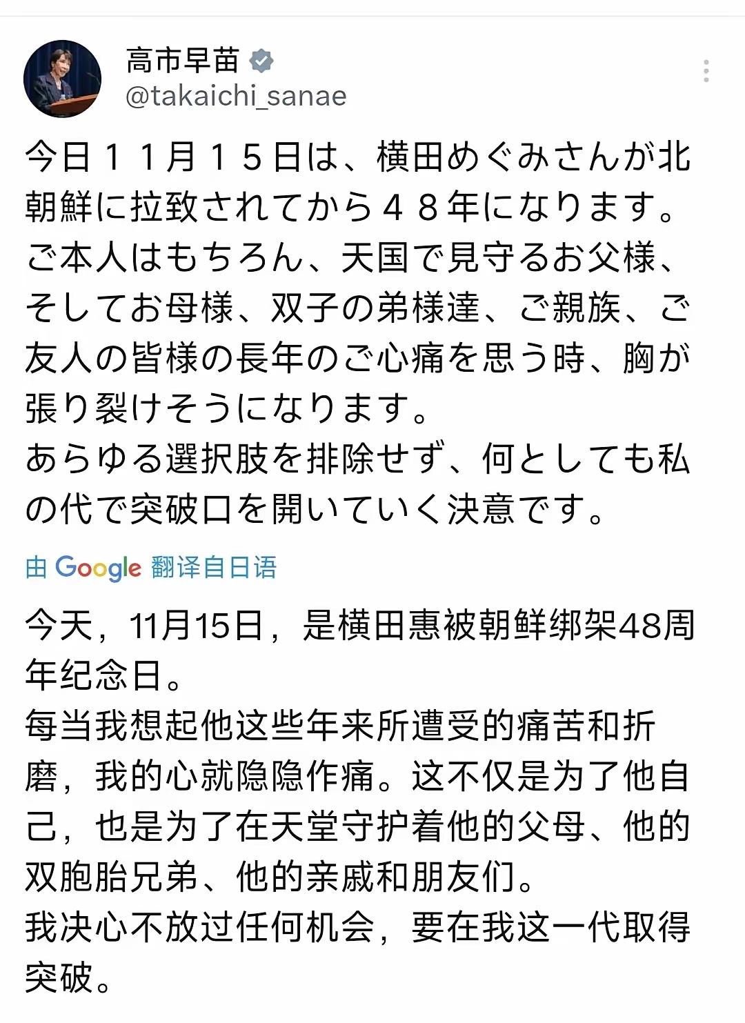 高市早苗昨天发了一篇文章,纪念据说是被朝鲜绑架的日本女子, 刚刚说要见金正恩谈睦邻友好,一转脸就在平台攻击朝鲜绑架, 刚刚和中国谈共同推进中日友谊,一转脸就说“台湾有事,日本出兵”, 这个高市早苗到底是缺乏经验,还是智商低啊,或者刚进更年期? 她应该明白,日本不是美国,特郎普可以天马行空、胡说八道,她不行,蕞尔小邦,经不起她这么折腾的。