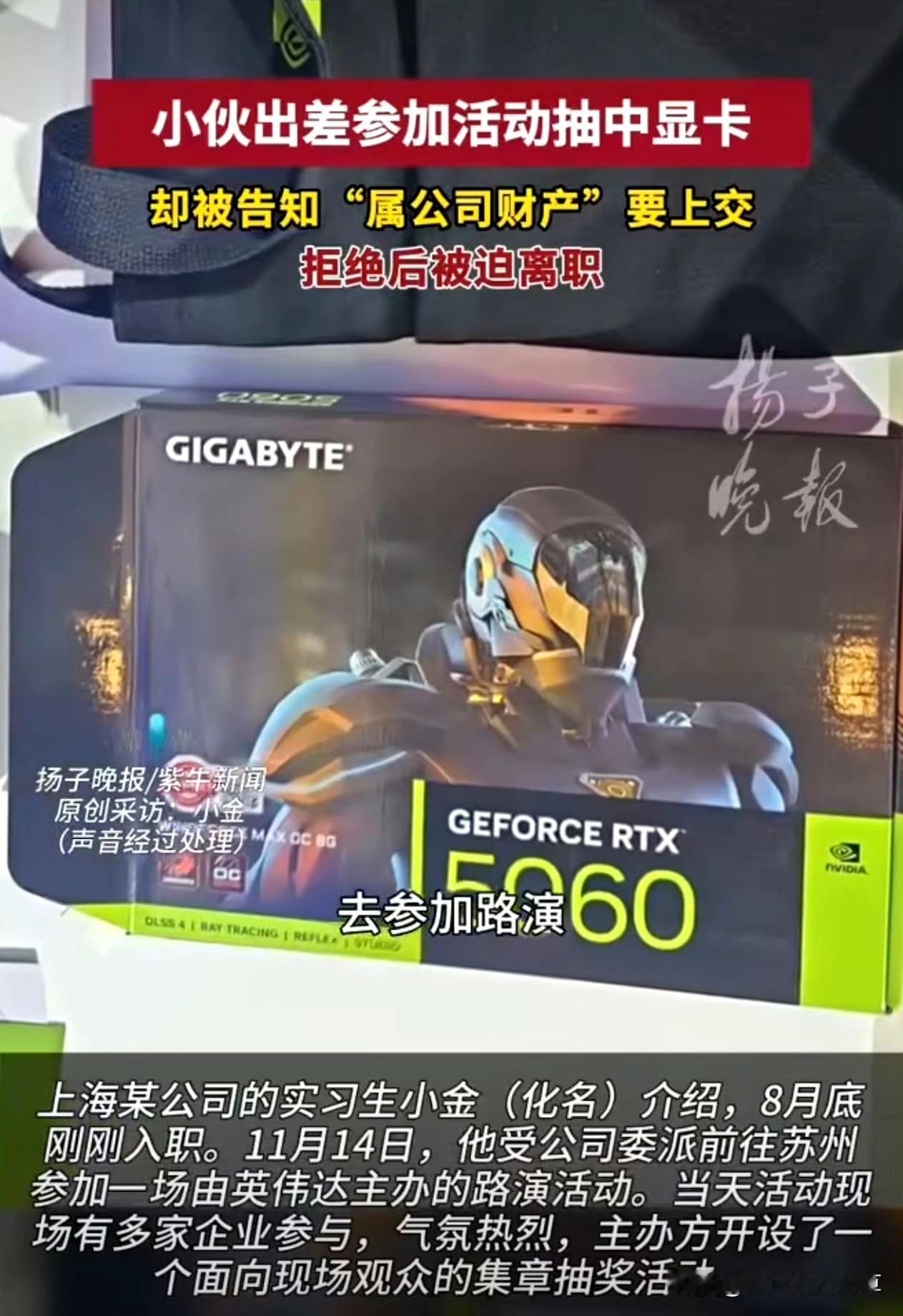 不得不说!这同事的心思当的太不地道了! 实习生出差抽空集章抽奖,好运抽中显卡,转头就被说显卡是公司财产要上交,还拿财务当借口吓唬人,其实财务根本不知情,甚至想让人家卖了分钱,这算盘打的也太精了。 实习生费劲保住显卡,结果公司不反思做法对不对,反而暗示人家另谋高就,最后只能交离职申请,这职场操作看着真让人憋屈。 这样的工作环境,谁还愿意真心给公司干活?