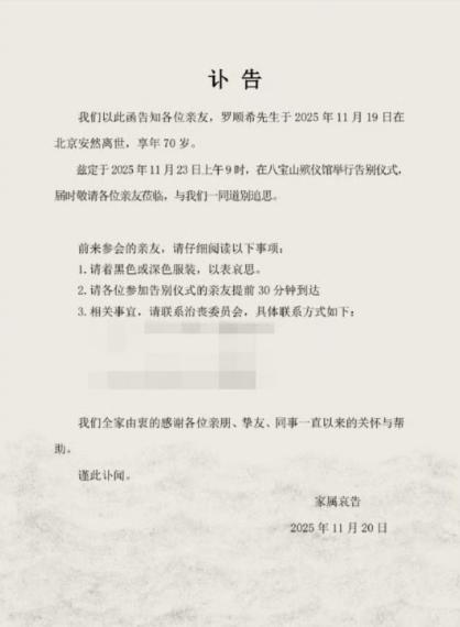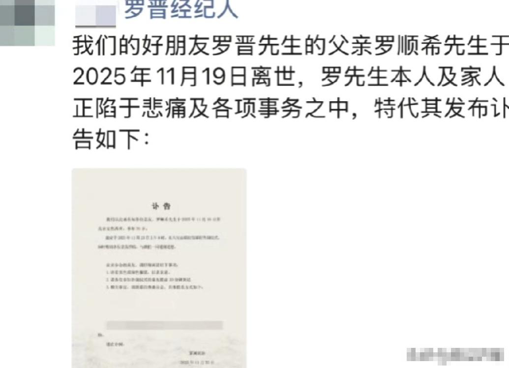 唐嫣罗晋婚变真相来了! 11月20日,罗晋的经纪人代替罗晋和唐嫣发出讣告,称罗晋的父亲罗顺希先生在北京因病去世,享年70岁,罗晋和家人沉浸在悲伤中,所以由经纪人代发讣告。   罗顺希先生生前是一名医生,职业的特殊性让他早年始终忙于工作,陪伴儿子罗晋的时间并不算多。   但在子女教育上,他有着自己的坚持与严厉——在罗晋年少顽皮时,曾被父亲送到工地搬砖磨炼心性,后来还被送入武校接受锻炼。   这份看似严苛的教育方式,在罗晋年少时并未被完全理解,直到他踏入大学校园,一次父亲在火车站扒着车窗默默目送他远行的画面,才让他猛然读懂了那份藏在严厉背后的深沉父爱。   后来在一档家庭纪实节目中,父亲在年夜饭桌上哽咽着夸赞儿子自食其力、奋力拼搏,还坦言“最重要的是我们有你这个好儿子”,罗晋强忍泪水伸手安慰父亲的场景,让无数观众见证了这对父子间浓厚的情感羁绊。   而两人合作拍摄的短片《理发》,既是父子俩首次荧幕同框,也成了这段亲情最珍贵的最后见证。   大约一年多前,罗顺希先生身体出现不适,确诊患病后便在北京接受长期治疗。   作为家中独子,罗晋毫不犹豫地调整了工作节奏,专程前往北京全程陪护父亲。   那段日子里,他几乎将所有精力都投入到照料父亲的事宜中,从日常护理到病情沟通,始终亲力亲为,陪伴父亲走过抗病的艰难历程。   与此同时,妻子唐嫣则留在上海,一边处理既定的演艺工作,一边照顾年幼的孩子,家中晚辈的照料主要由唐嫣的父母帮忙分担——并非罗晋的父母不愿参与,而是彼时他们需全力专注于病患的治疗与护理,实在无暇分心其他事务。   就在罗晋全身心陪伴父亲与病魔抗争的这段时间里,网络上开始流传起他与唐嫣的婚变传闻。   起因是某狗仔爆料“圈内一对甜蜜的中年夫妻已离婚”,由于罗晋与唐嫣近一年多几乎没有公开同框,私下也极少在社交平台秀恩爱,网友便迅速将矛头指向了这对夫妻。   随后,更有传言称两人已分居一年半,且查询不到任何商业合作关联,这些在娱乐圈被部分人片面视为“分手信号”的特征,让传闻愈演愈烈,最终登上热搜榜单。   面对铺天盖地的猜测,双方团队始终没有公开回应,这反而让更多不明真相的网友相信了传闻的真实性。   11月20日,罗晋的经纪人通过朋友圈正式发布讣告,不仅告知外界罗顺希先生离世的消息,还说明因罗晋及家人沉浸在巨大悲痛中,无法亲自处理相关事宜,故由经纪人代为发布。   讣告中明确了后事安排:罗顺希先生的告别仪式将于11月23日在八宝山殡仪馆举行。   这则讣告的发布,瞬间让此前沸沸扬扬的婚变传闻不攻自破。   公众这才恍然大悟,罗晋与唐嫣长期分隔两地、极少同框,并非感情破裂,而是罗晋为了陪护病重的父亲,不得不驻守北京,唐嫣则在上海承担起家庭与事业的双重责任,这是一对夫妻在特殊时期的默契分工与相互体谅。   事实上,罗晋与唐嫣没有商业关联本就是正常现象,在娱乐圈中,许多明星夫妻都会选择各自独立经营事业,这并非衡量感情好坏的标准。   而团队此前未回应传闻,核心原因是那段时间恰逢罗顺希先生病情危重,罗晋满心都是父亲的健康状况,根本没有心思去关注网络上的流言蜚语。   对于罗顺希先生70岁便因病离世,不少网友感到惋惜,认为这个年纪在当下社会并不算高龄,推测长期患病对其身体造成了严重损耗。   同时,许多人对之前传播婚变传闻的行为表示不认同,觉得在他人家人离世、沉浸悲痛的时刻,过度关注私人感情生活并散布谣言,是极不尊重他人的表现。   也有网友理性指出,娱乐圈中部分爆料本就是为了博眼球、赚热度,并无实际依据,此次事件便是典型例子。   目前,公众最为关注的便是11月23日的告别仪式。   作为儿媳,唐嫣按情理应当出席,这也被不少人看作是对婚变传闻最直接的回应。   但无论如何,罗晋与家人正经历着失去亲人的巨大痛苦,此刻最需要的是安静的环境与他人的尊重。   那些无根据的猜测与谣言,理应就此停止,让逝者安息,也让生者能够顺利处理后事,慢慢走出这段艰难的时光。   毕竟,在亲情面前,所有无端的八卦与揣测,都显得格外苍白与不合时宜。   今天的分享到这里就结束了,大家对此事有何看法,欢迎在评论区留言和讨论,感兴趣的可以点击头像加关注,我将每日更新优质内容,我们下期见。
