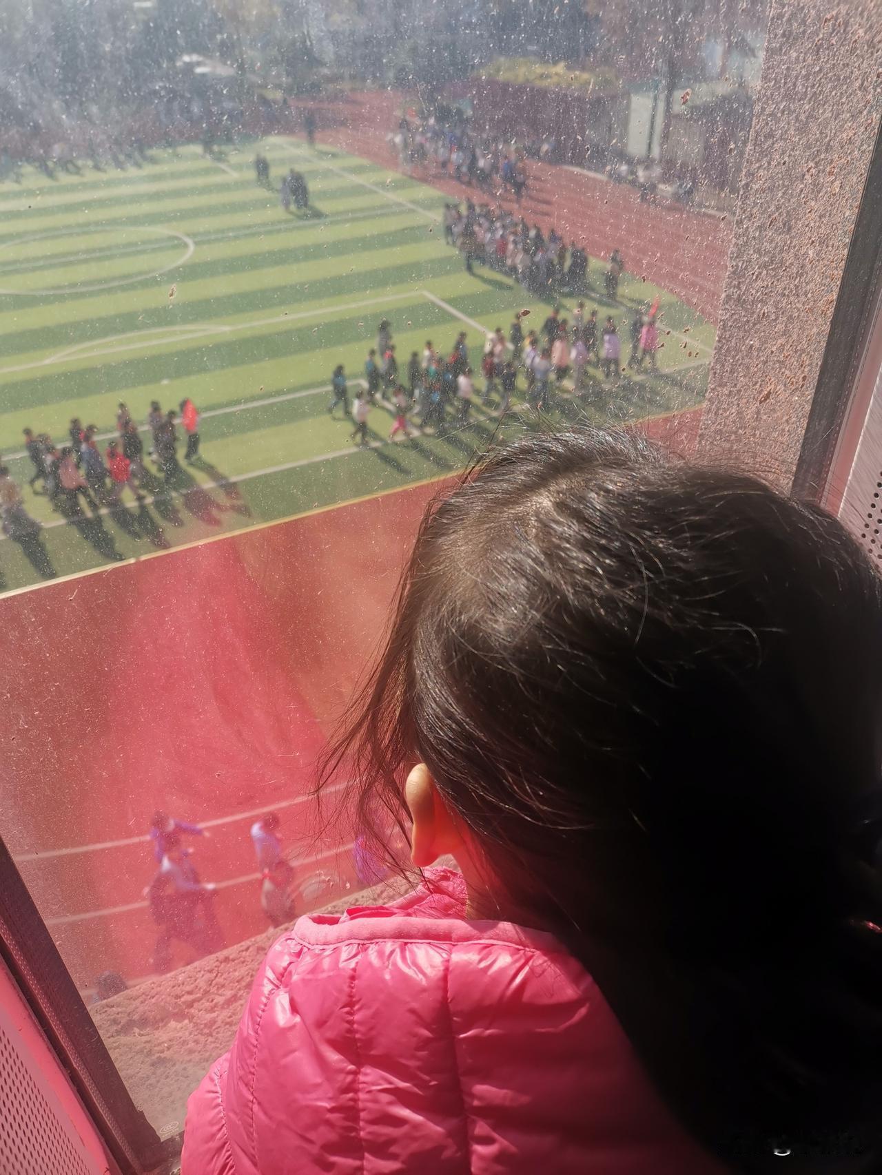 自闭症孩子也有渴望吗? 下课了,自己要跑到体育馆来玩,玩了一会,发现楼下同学们在跑步。 趴在窗户往外看,这是渴望?羡慕?