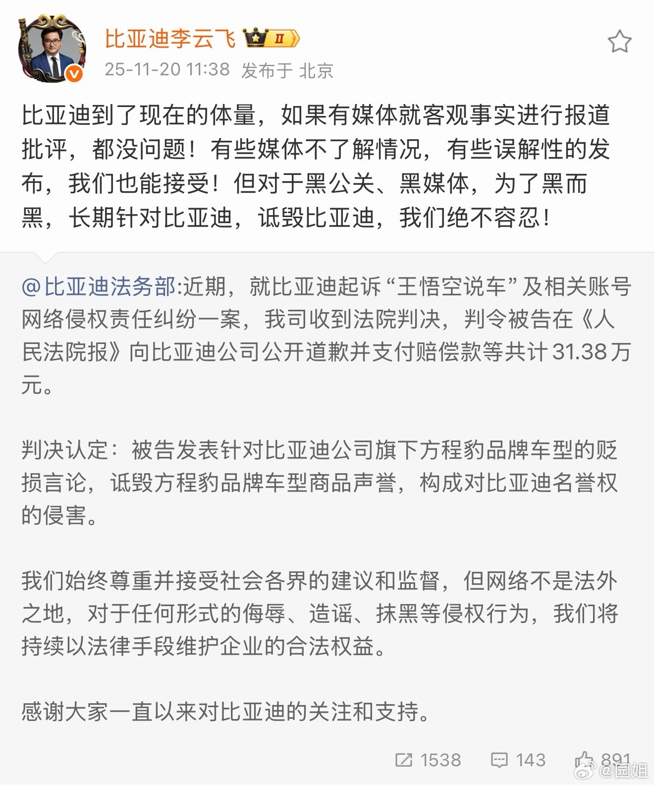 最近比亚迪对“黑公关”重拳出击来维护自身的合法权益,很多人还会觉得这是所谓的“法务部发力了”,但其实结合网信办刚刚曝光的一批典型案例就能看出。现在对于所谓“黑公关”的一个明显信号,通过恶意收集企业黑料来博流量的行为在未来将会是重点的打击对象。而且频繁的舆论攻击不仅会影响普通消费者的消费决策,更会把企业本应用于技术研发的资源被迫用在公关应对上。所以车企间与其拉踩阴阳友商,不如把资源集中在研发产品,毕竟只有技术竞争才是良性之争。