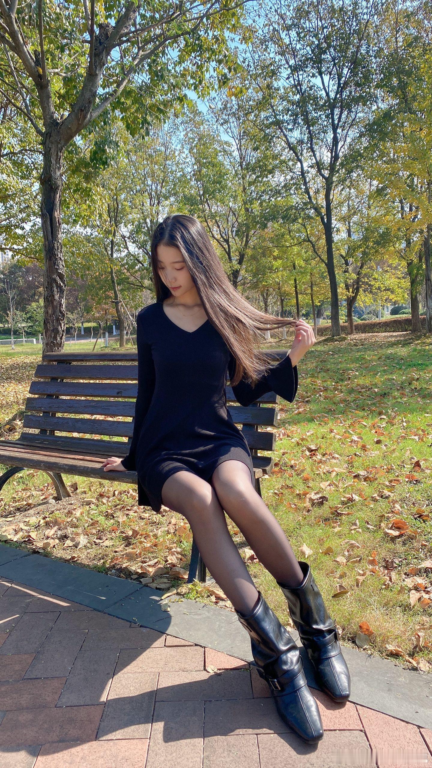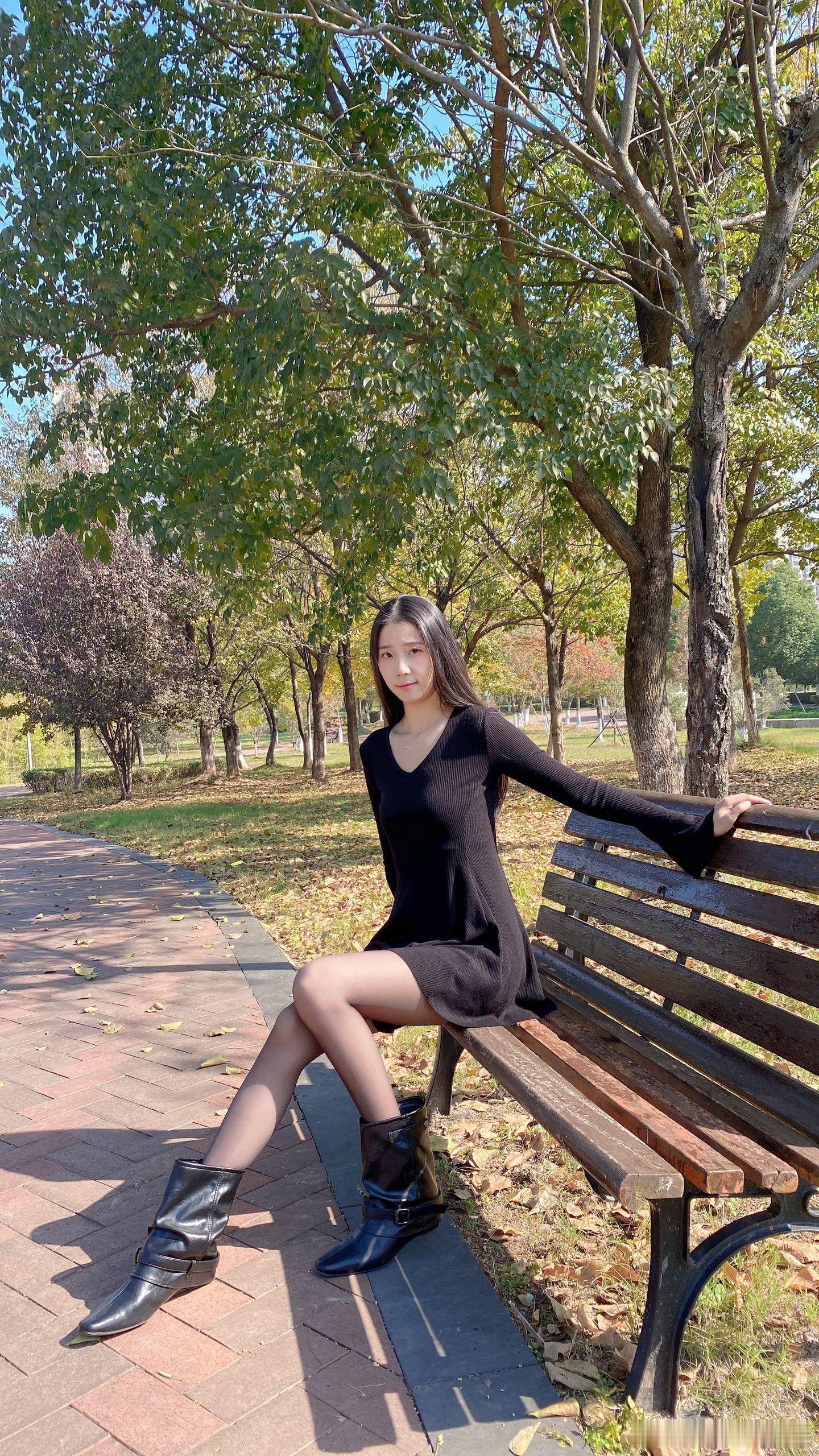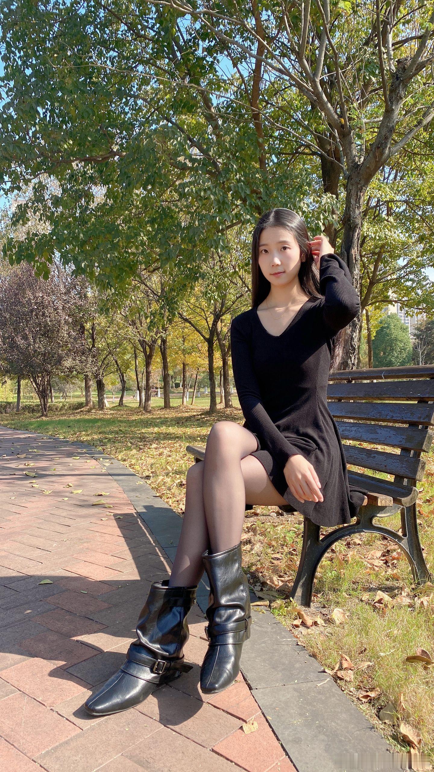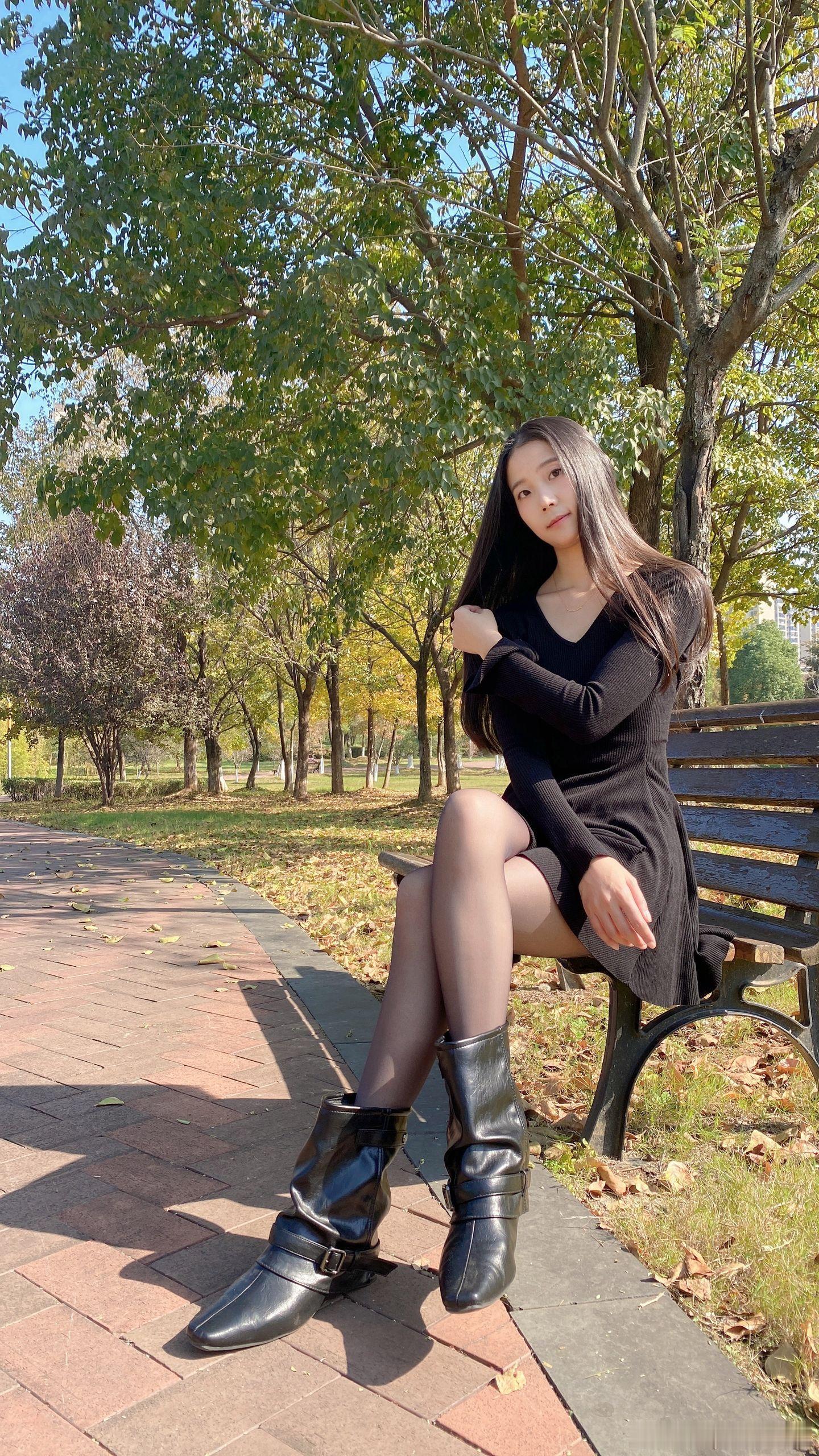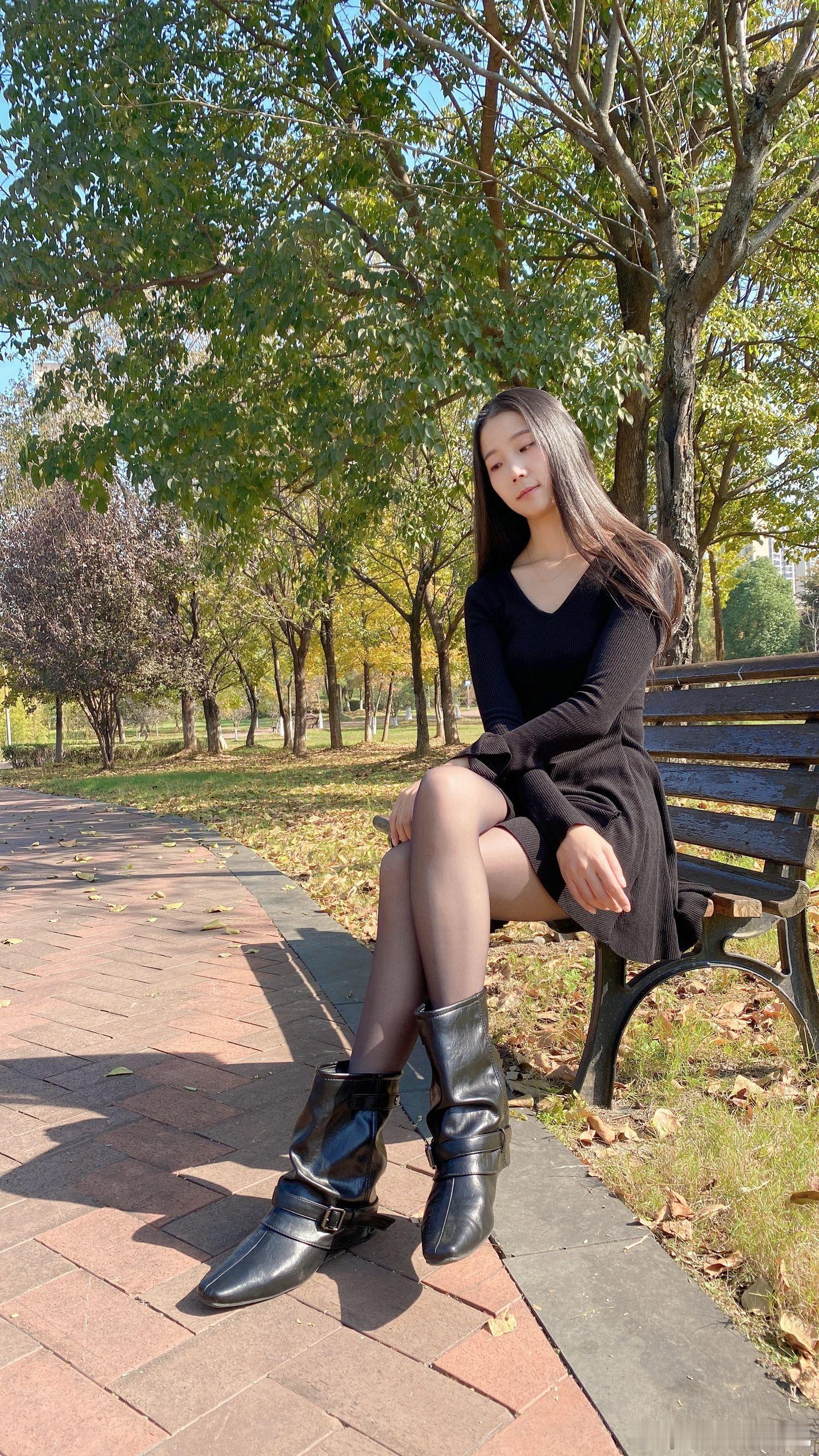 黑色穿搭,连衣裙,短靴,黑丝打底