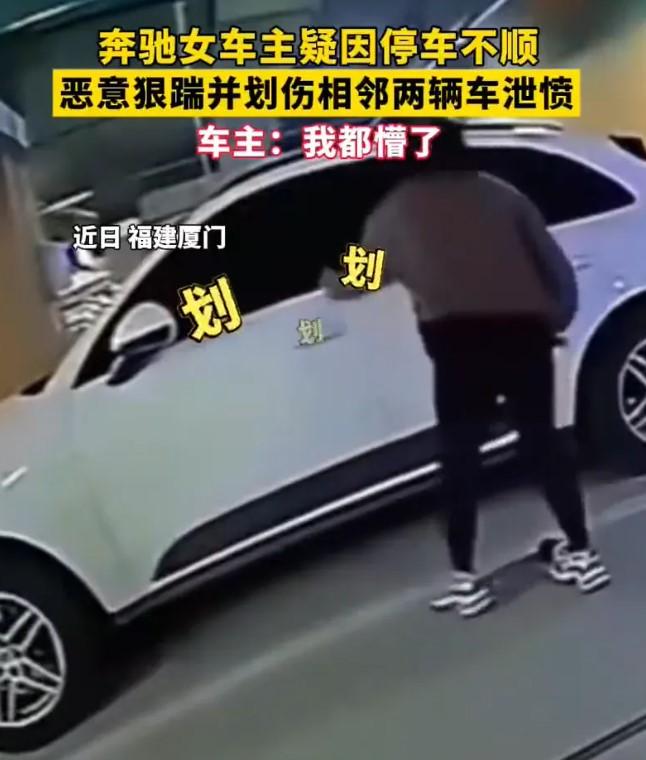 近日,福建厦门某商场地下车库内上演一幕闹剧:一名奔驰女车主因自身停车技术不佳,十多次倒车仍无法入库,竟迁怒于旁边正常停放的车辆,不仅抬脚狠踹,还掏出钥匙划车泄愤,而这一系列恶行全被受害车辆的 “哨兵模式” 完整记录,成为铁证。 事发当天,该商场地下车库因客流密集一位难求。奔驰女车主绕场许久后,终于发现一个两侧分别停着黑色轿车与白色保时捷的空位,两车均规规矩矩停在线内,预留了充足停车空间。可她倒车时屡屡失误,要么车头险些蹭到黑车后视镜,要么车尾偏向保时捷,反复调整十多次后,车子仍斜停在车位入口,大半个车身露在通道内。监控中隐约传来她拍打方向盘的声响,显然已被停车难题逼至情绪崩溃。 令人意外的是,她并未寻求帮助,而是猛地拉上手刹、摔门下车,径直走向旁边的黑色轿车。只见她绕车一周后,抬脚就朝驾驶位车门狠踹两脚,留下两个清晰的鞋印凹陷;随后又转向右侧保时捷,用更大力度踹向副驾驶车门。发泄完踹车的怒火,她仍不解气,从包里掏出钥匙,弯腰对准黑车车头一路划至车尾,深痕直接露出底漆;紧接着又对保时捷如法炮制,从后备箱划到前门,动作干脆利落。期间她还多次抬头张望,见无明显摄像头便愈发放肆,正脸被哨兵模式完整拍下。 最终,这位女车主仍未能停好车,驾车径直离去。而黑车车主王先生办完事返回时,看到刚买三个月的新车满身伤痕,瞬间 “懵了”,“我停车时特意多留了空间,就怕影响别人,没想到遭了无妄之灾”。他通过手机调取哨兵模式录像,才发现自己的车与旁边的保时捷都成了泄愤目标,随即联系保时捷车主共同报警,并提交了完整视频证据。 经 4S 店定损,王先生的车辆维修费用约 8000 元,保时捷因漆面工艺特殊,修复费用高达 1.2 万元,两车损失合计 2 万元。根据《刑法》第二百七十五条规定,故意毁坏财物数额达 5000 元以上即可刑事立案,涉事女子的行为已涉嫌犯罪,或将面临三年以下有期徒刑、拘役或罚金。面对警方出示的监控铁证,女车主无从辩解,承认因停车不顺情绪失控才做出糊涂事,但两位受害车主均明确表示 “绝不和解”。 目前,警方已对该案件立案侦查,涉事女子不仅要全额赔偿维修费用,还需承担相应刑事责任。这场闹剧也让 “哨兵模式” 再次走进公众视野,作为智能汽车的安全功能,它在车辆上锁后可自动检测威胁并记录证据,已多次协助警方破获车辆损害案件,成为车主维权的 “硬核帮手”。同时也警示世人:情绪失控需有度,迁怒他人泄私愤,终将为自己的冲动付出法律代价。