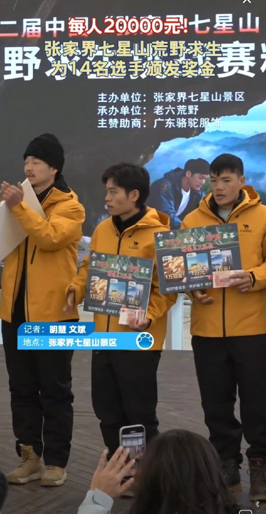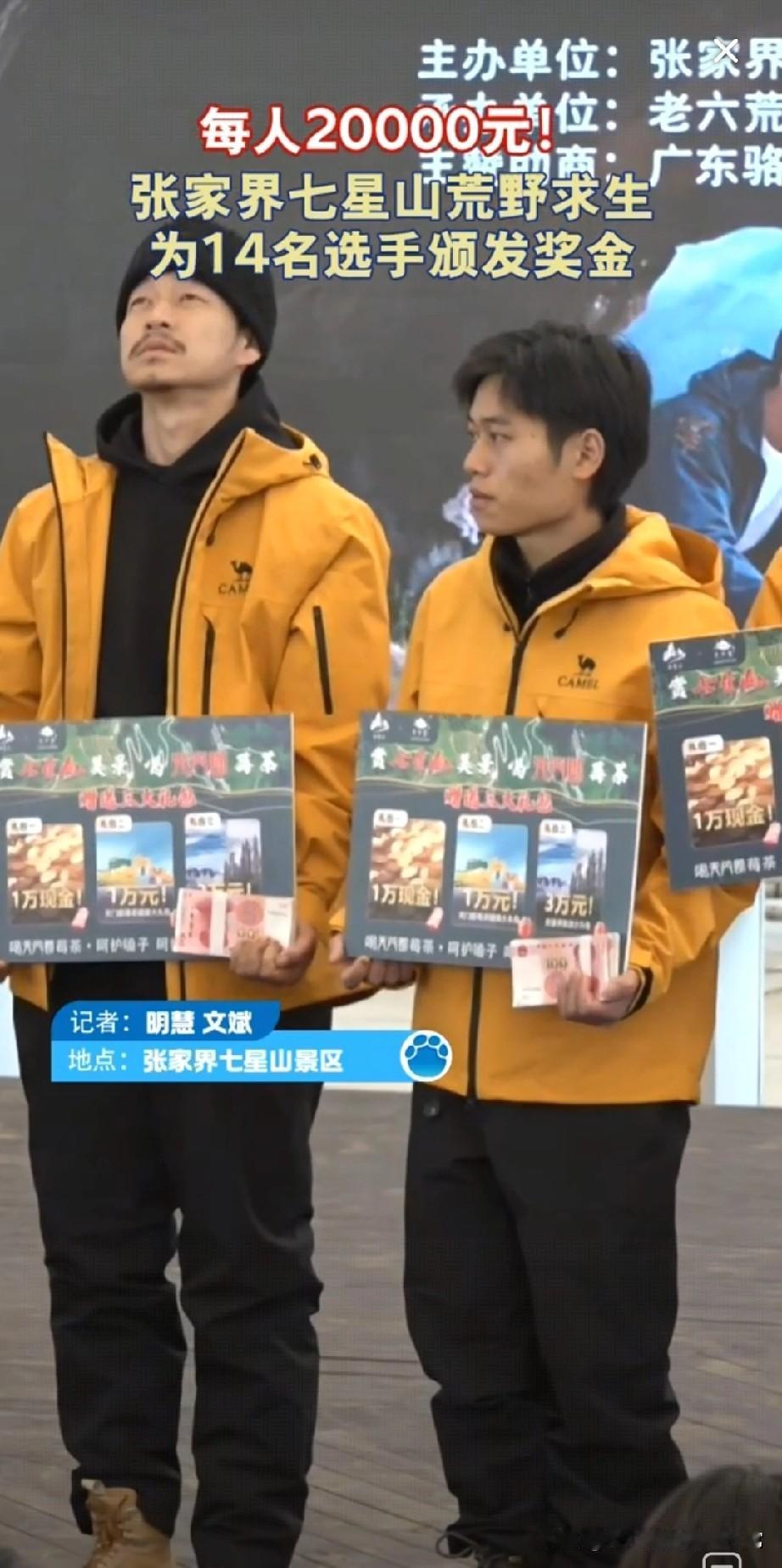拿完2万奖金,荒野选手眼睛都亮了!决赛要杀疯 刚在张家界七星山现场蹲到——14个荒野求生选手抱着印着“1万现金”的礼盒站成排,黄冲锋衣里揣着真金白银,有人攥礼盒的手都紧了。 之前在山里啃树皮、睡山洞时蔫蔫的,现在拿了钱,一个个腰杆都直了,弹幕刷爆“这奖金比暖气还暖”!有选手偷偷笑:“这下决赛拼了,总不能对不起这钱。” 但也有人泼冷水:拿了保底奖金,会不会有人决赛划水?毕竟“稳赚2万”和“赌更高奖金”,谁不选前者? 你们说——这提前发奖金是给选手打鸡血,还是变相削弱决赛观赏性?户外比赛“先给钱再比拼”,到底是人性化还是毁了竞技性?