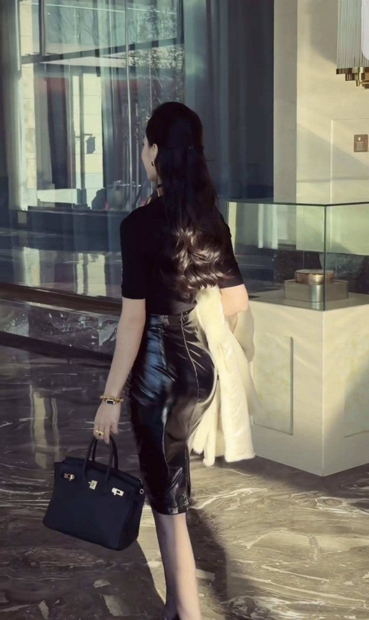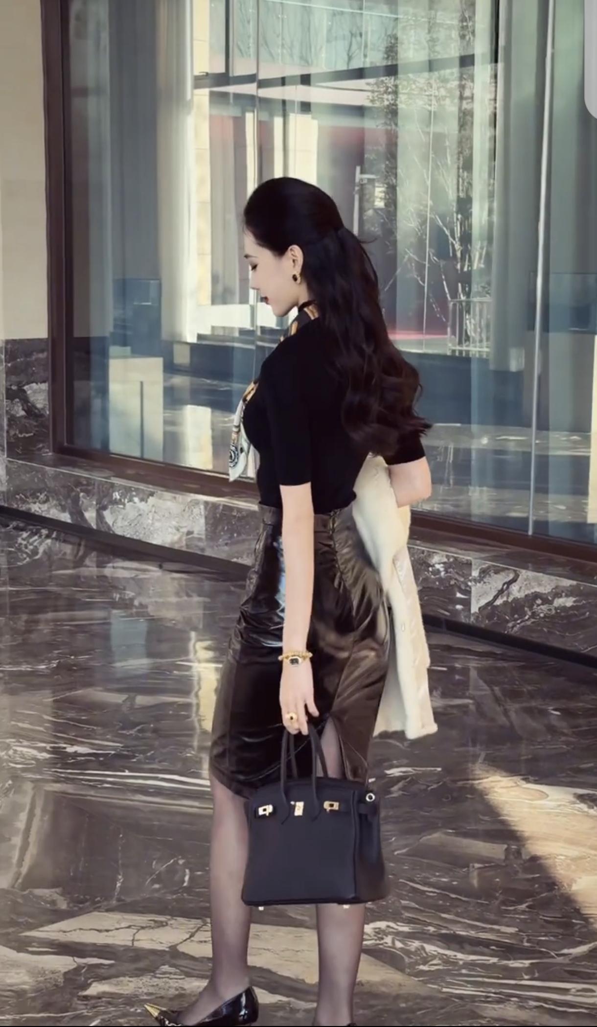 街头气质黑丝皮裙小阿姨,这个背影,真有韵味!黑裙感美女