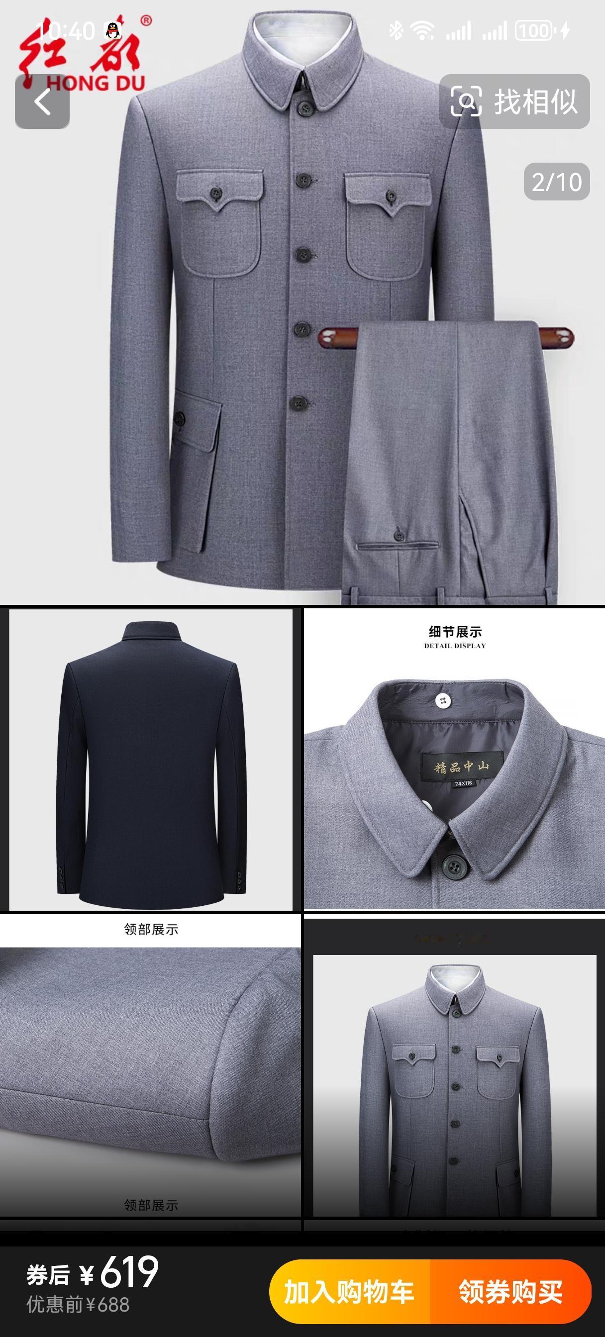 11月18日照片一出,中山装瞬间冲上热搜,好多男士在新闻品论区说我想要同款中山装。然后各男装品牌积极跟进,昨天某宝上“同款”已经成了热搜词,好多男装品牌把同款中山装置顶,甚至顺丰包邮,退换免费。什么叫中国速度,这就叫中国速度。