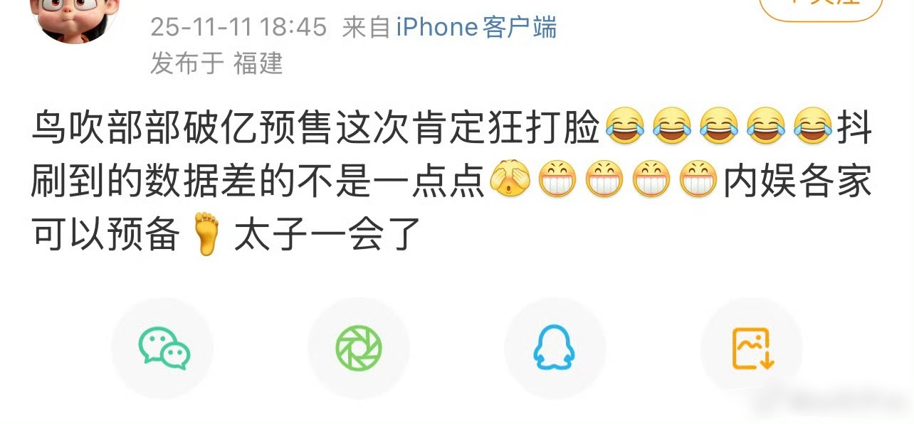 预售稳稳破亿了,看趋势破1.1亿不是问题,鸟姐心态太稳了,明天看《狂野时代》。
