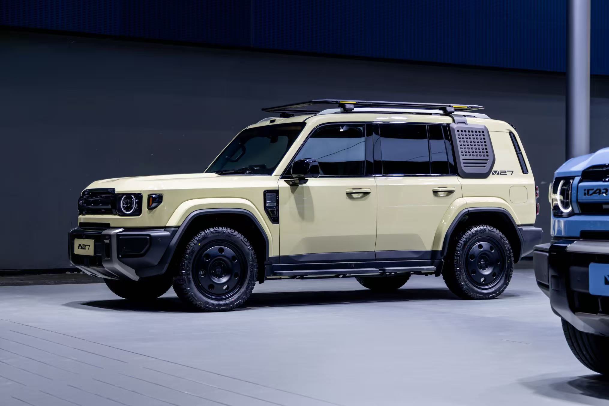 硬派方盒子+科技,这个组合相信很多人还没体验过。今年的广州车展上, 让我们看到了硬派SUV和科技的完美融合。四轮推向四角,短前后悬,直立的A柱,长轴距这些经典元素在V27上都有,就不多说了。但是非常有科技感设计的星际舷窗双天幕和天空岛顶棚,科技感拉满,真的非常吸引人。还有高集成度侧翼子板科技岛,呈现数码产品般的精致、科技感。你以为这就完了?显然还不够。搭载高通骁龙8295P芯片与15.4英寸大屏,集成手机互联、语音控制及智能驾驶辅助功能。而且它的智能驾驶也来到行业第一梯队,搭载地平线HSD高阶驾驶辅助系统,车位到车位丝滑表现,硬派方盒子也智能。讲真的,国产方盒子还得看iCAR,兼顾了方盒子不适用于家用的痛点,极具科技感的座舱空间,让它除了更好玩之外,也更好用,一车全能。