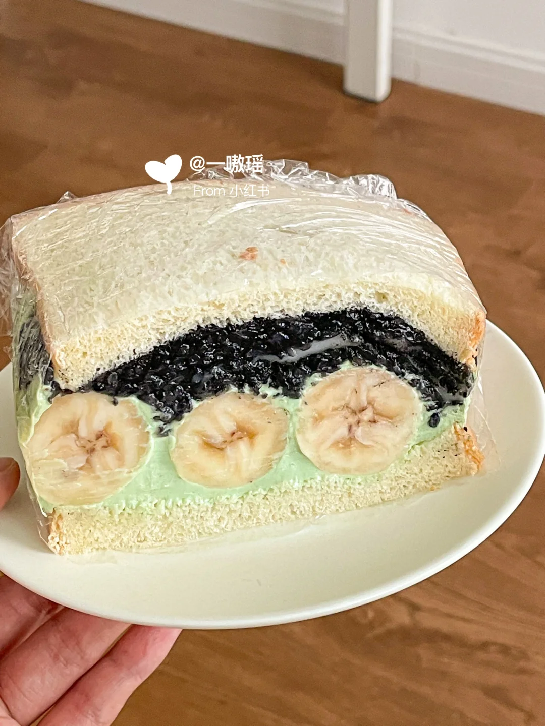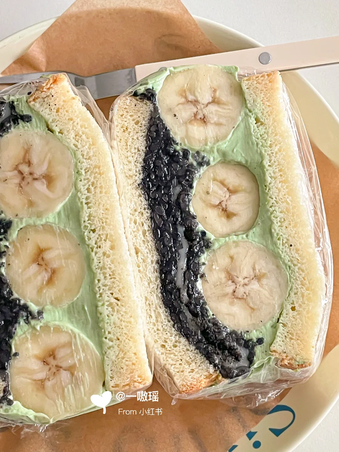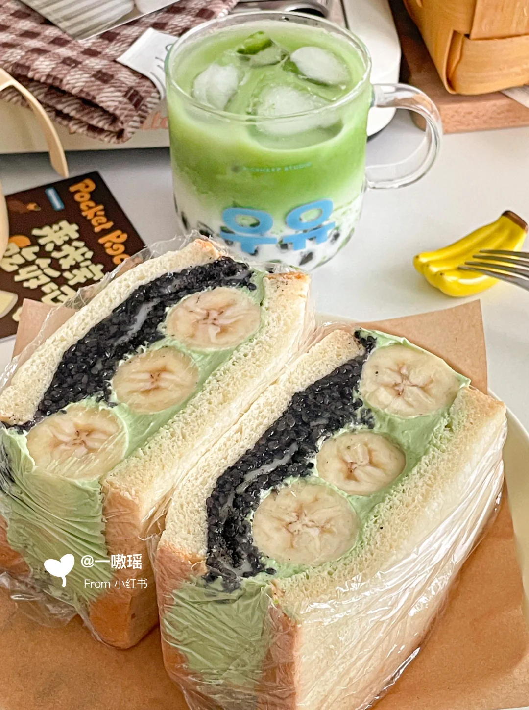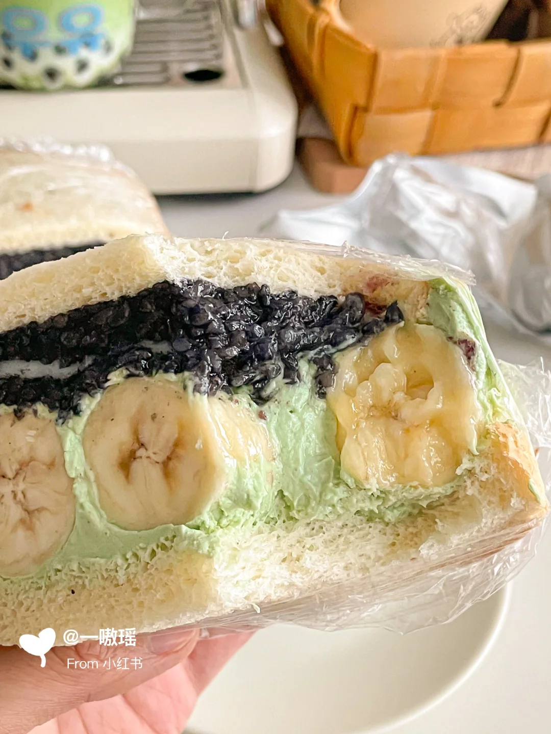 机智的我把它包进三明治里,叠加抹茶希腊酸奶和软糯香甜的香蕉🍌