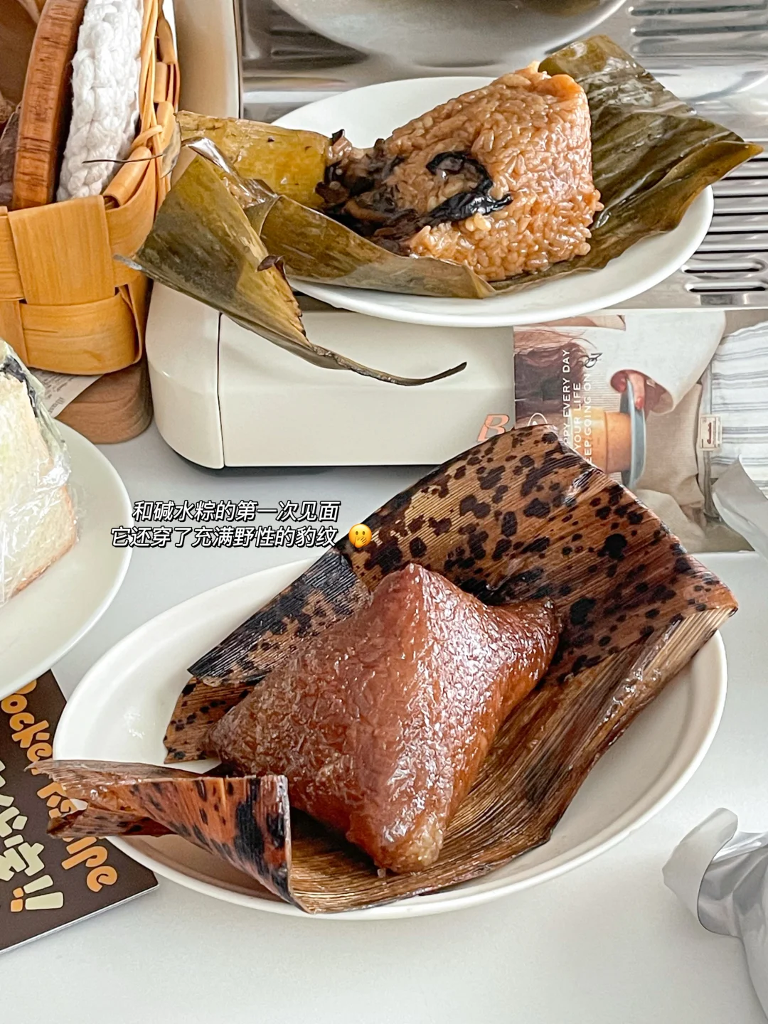 乌饭是咱们江浙皖一带的传统食品,南烛叶捣汁,加入糯米浸泡隔夜,蒸煮后油亮清香,软软糯糯特别好吃!缸鸭狗把乌米饭包进粽叶,香气一整个又升华了
