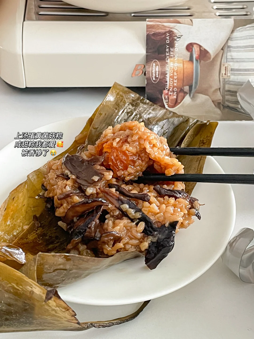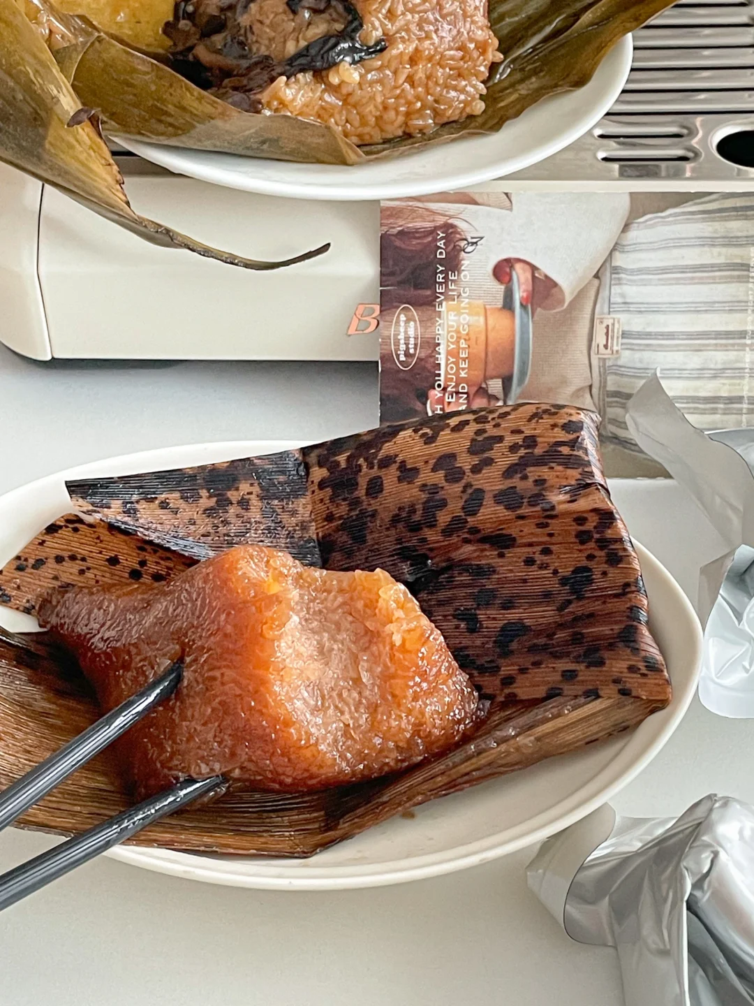 ▫️粽子煮熟稍微放凉,压扁放在吐司上