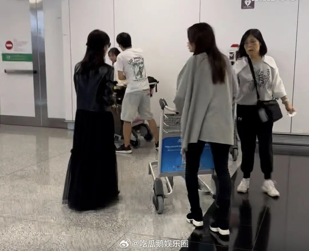 赵雅芝三代同堂现身机场,45岁次子携女儿罕露脸,与继父相处融洽!