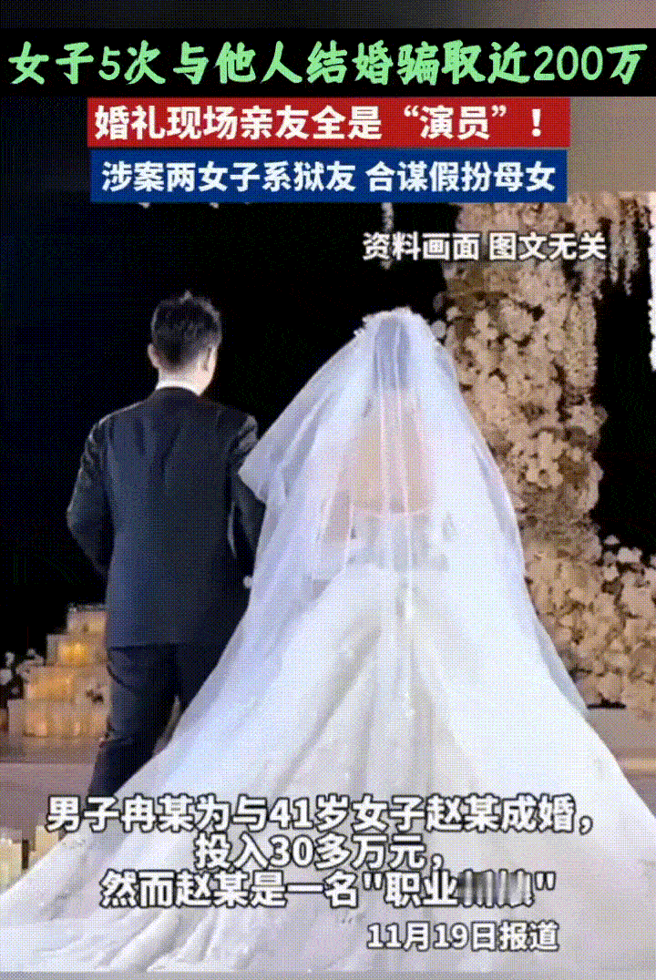 女子通过5次与他人结婚骗取人民币近200万,婚礼现场女方亲友居然还全是“演员”!涉案两女子还是狱友,合谋假扮母女。 这种骗婚闹剧实在让人咋舌:5次结婚骗近200万,连婚礼亲友都是“演员”,狱友两人合谋扮母女,把婚姻当成了敛财的工具,不仅践踏了感情,更击穿了人们的信任底线。 这样人和事的出现和增多,难怪会让越来越多的男性对婚姻产生恐惧。本应是温情港湾的婚姻,被演变成精心设计的骗局,谁还敢再轻易交付真心?你在这里把未来交给了她,她却把你当成了待宰的羔羊,谁想想不害怕。。。 这类案件不仅需要法律严惩,更该警醒所有人:婚姻的基础是真诚,任何把它当生意的行为,终究会被揭穿,同时也会让更多人对婚姻望而却步,寒了人心。