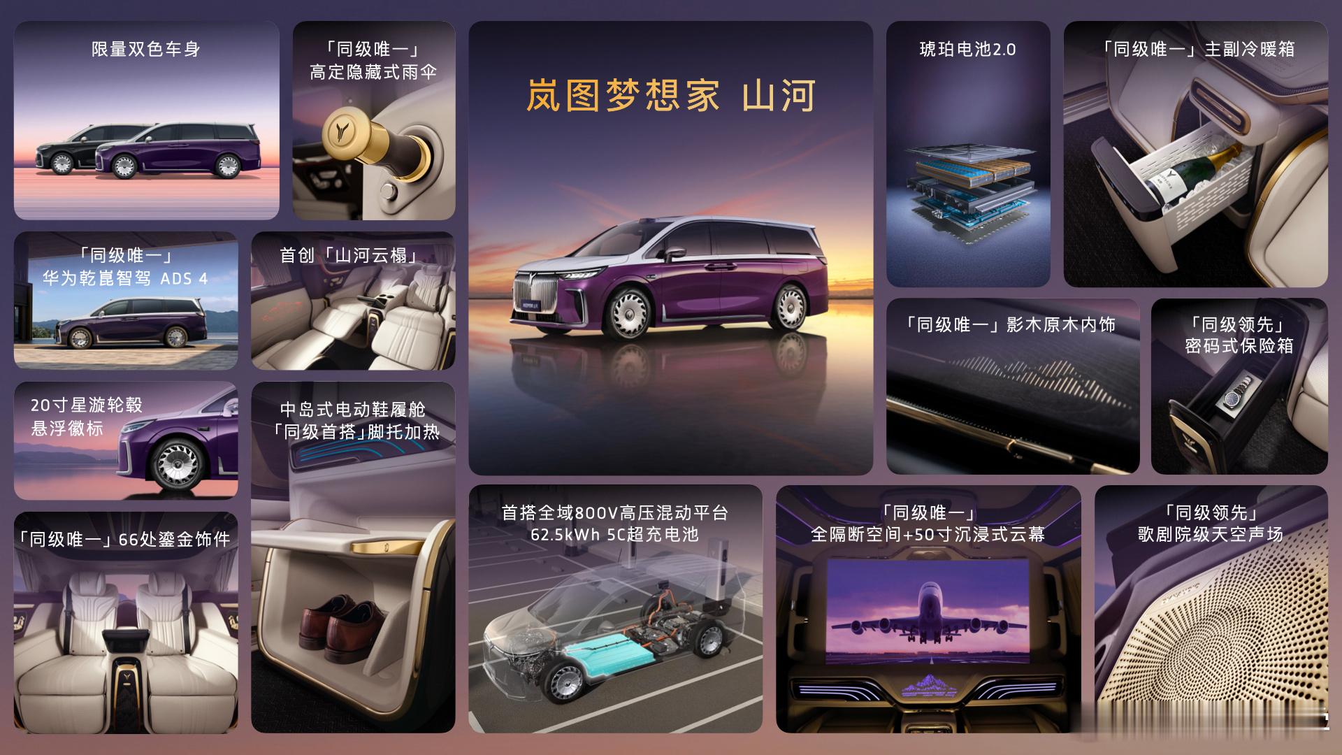 岚图梦想家自从销量起飞了之后,现在已经有想干掉所有合资品牌百万级mpv的想法了!这不山河就来了!售价70.99万元,中式的极致豪华,光那个雨伞就已经有劳斯莱斯的味道了。