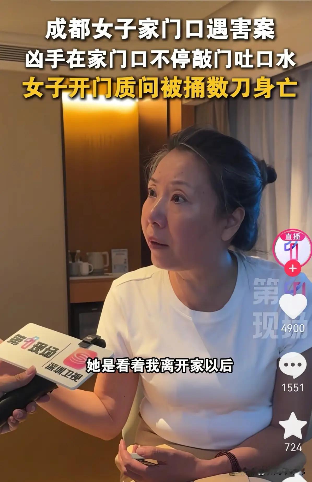 我有种预感,成都女子家门口遇害案,要成为一个里程碑式的案件! 谁能想到,27岁的小雅把该做的都做了,却还是没能躲过那场灭顶之灾。 小区里陌生女子梁某无故敲门滋扰,她没慌,先喊了妈妈,又等保安到场才敢开门。可门一开,尖刀就刺向了她的头面和胸膛,十刀,夺走了一条鲜活的生命。 保安驱离时,梁某一句“我敲门犯法吗?”,简直让人齿冷。更让人揪心的是,鉴定说她有精神分裂症,仅部分刑事责任能力。 家本是遮风挡雨的港湾,如今却成了危险之地,这悲哀太沉重。人人平等的信条里,从没有“病人杀人可豁免”的条文。 精神病人的权益要保障,但受害者的命就不是命了?成都这起案件的一审延期,让无数人盼着一个公道,更盼着能给“安全”一个明确的答案。