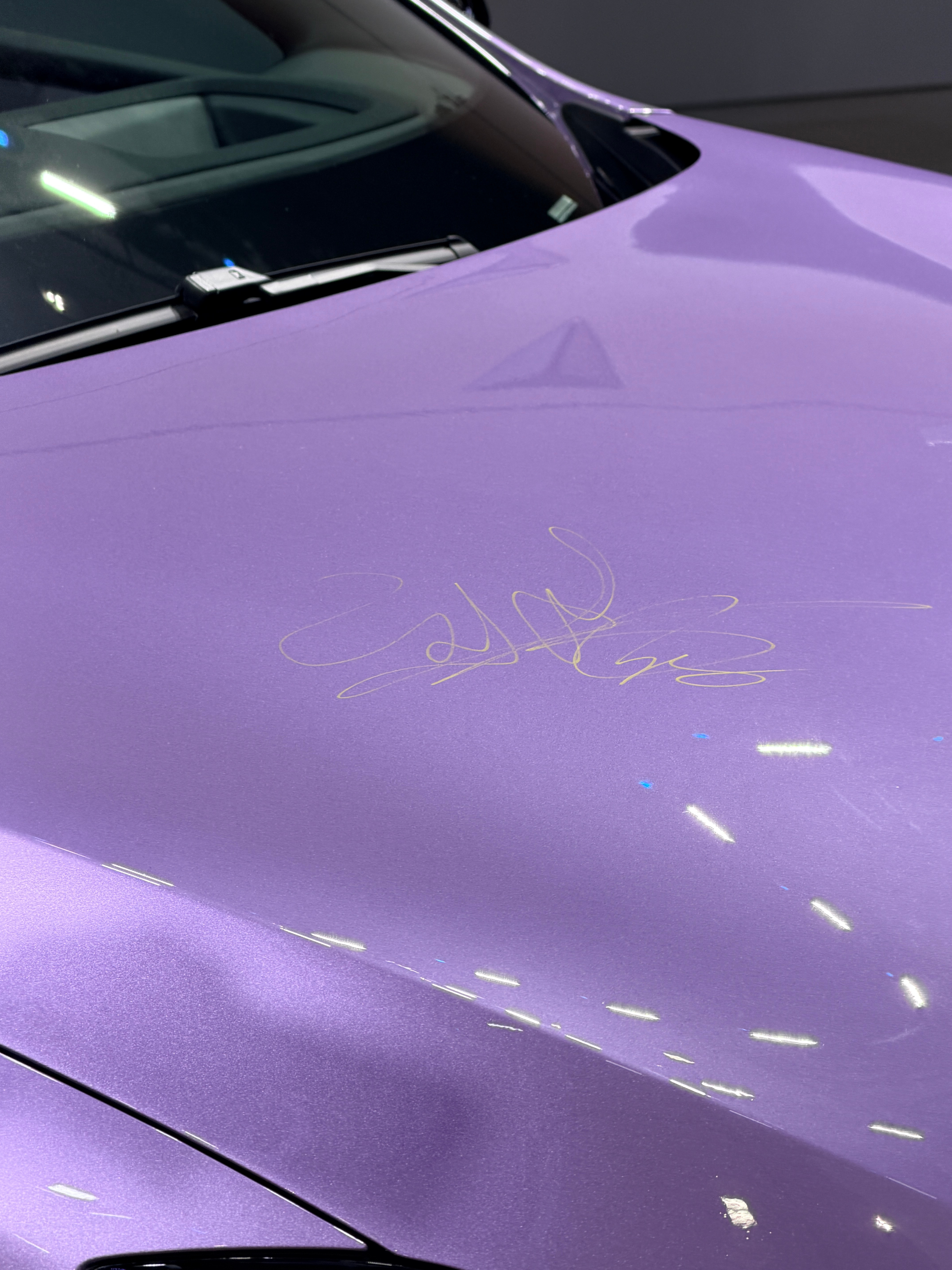 深蓝L06展台上有刘浩存同款紫色耶机盖上还有她的专属签名!!四舍五入相当于看到本人了
