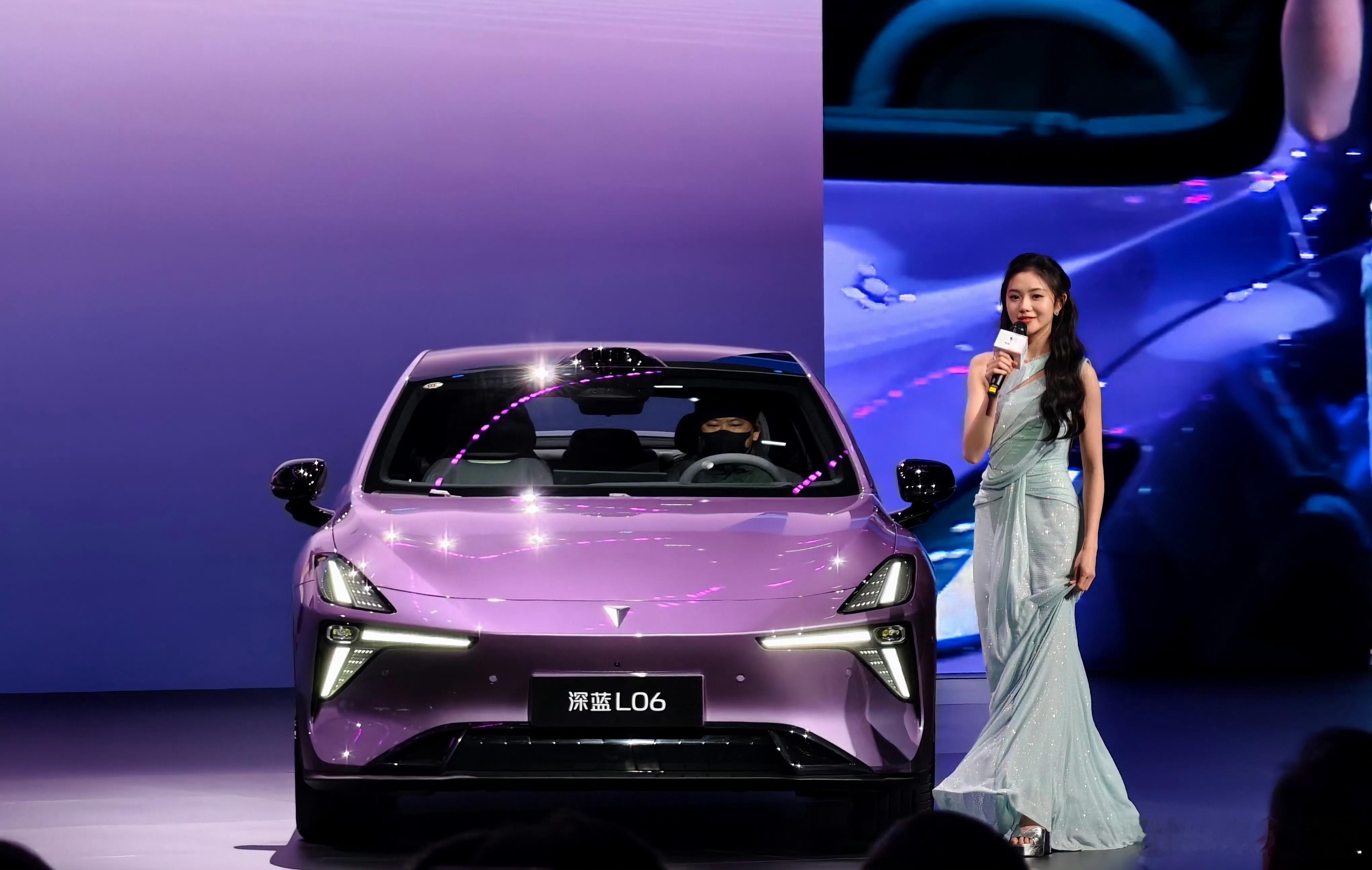 深蓝L06展台上有刘浩存同款紫色耶机盖上还有她的专属签名!!四舍五入相当于看到本