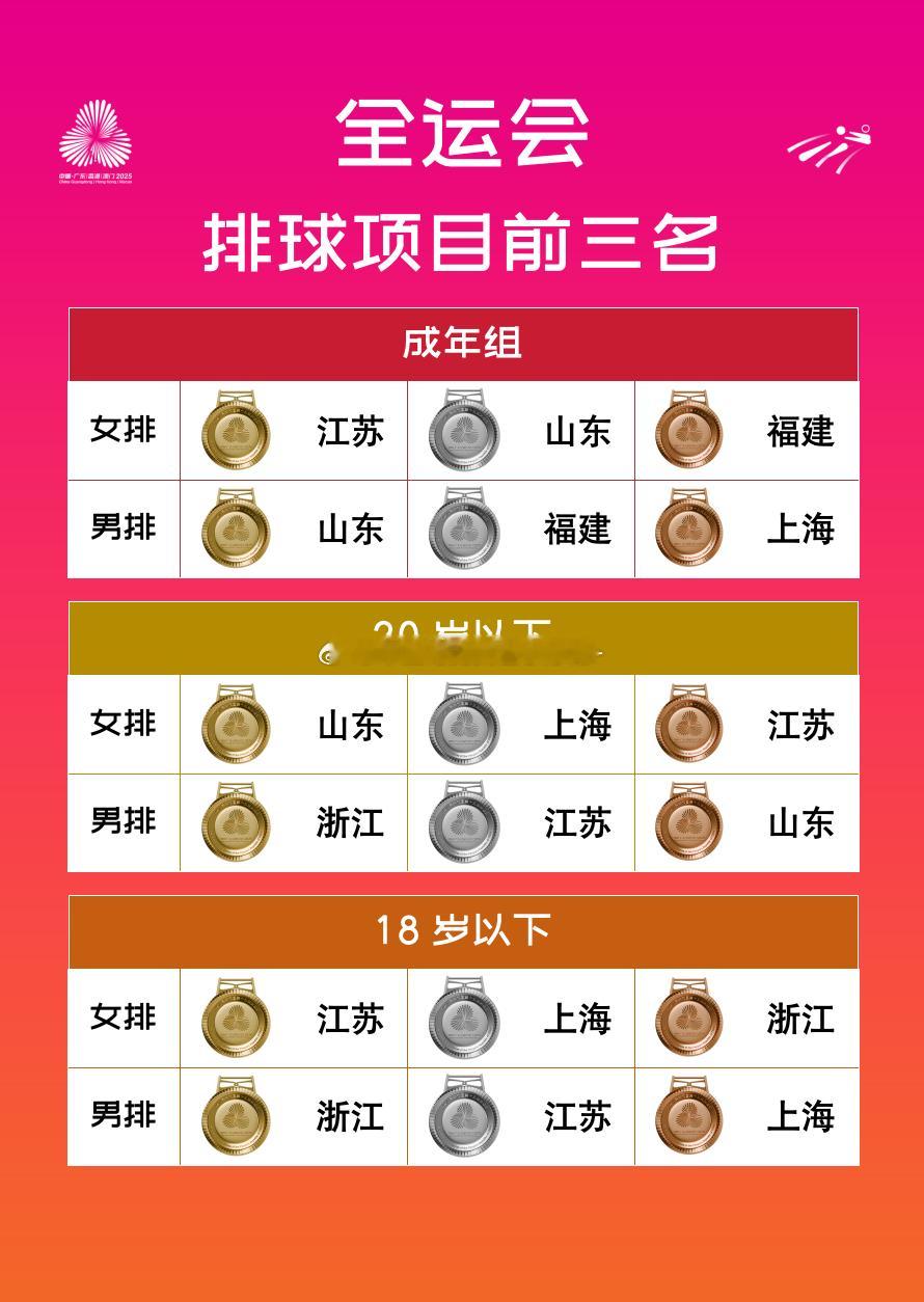 全运会男女排三个梯队:江苏拿到了5枚奖牌,山东省和上海收获4枚