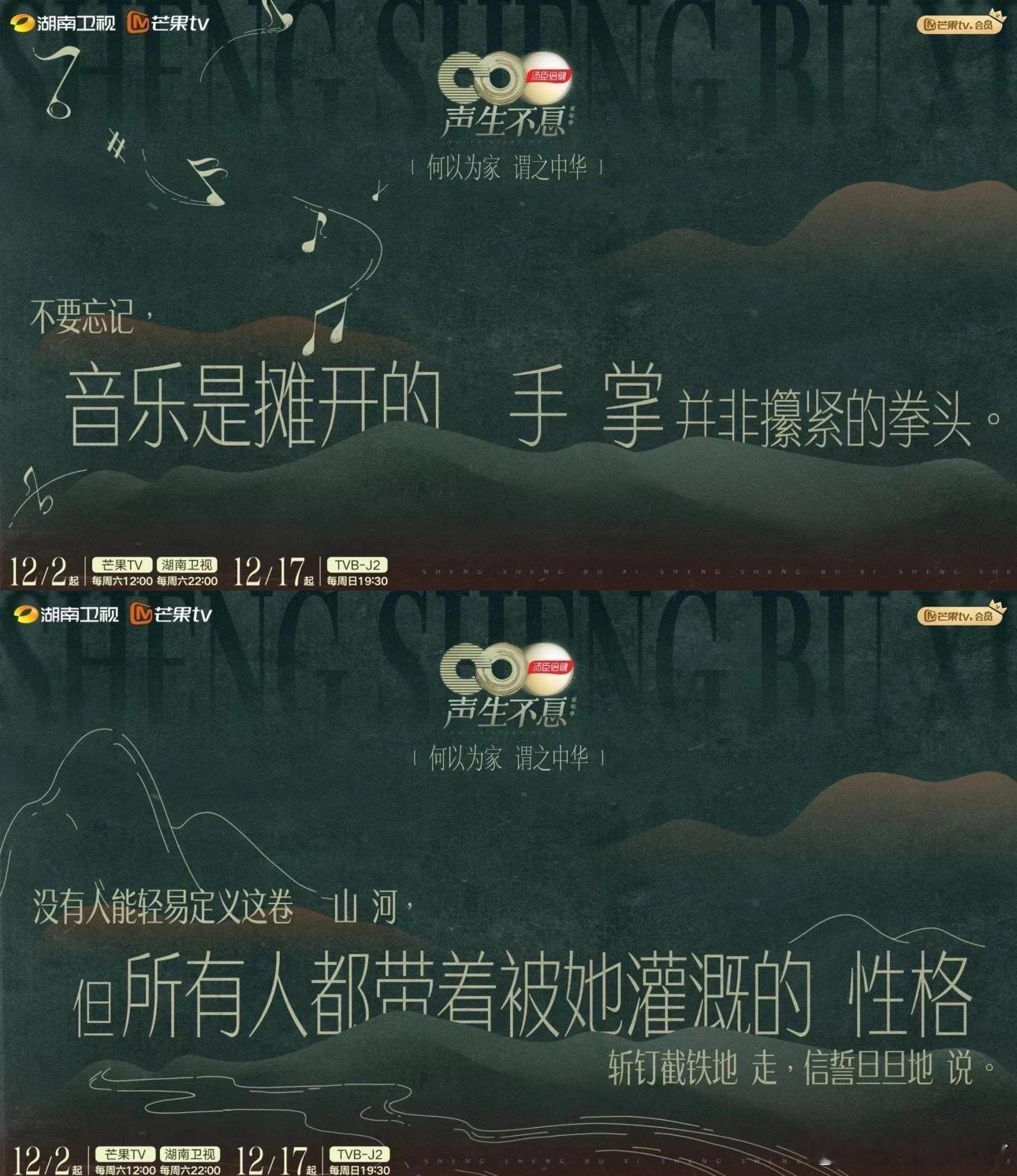 声生不息回归依旧是文案天花板!前几季“音乐是摊开的手掌”温暖,这季华流季“华人之声声生不息”,尽显文化的生命力。