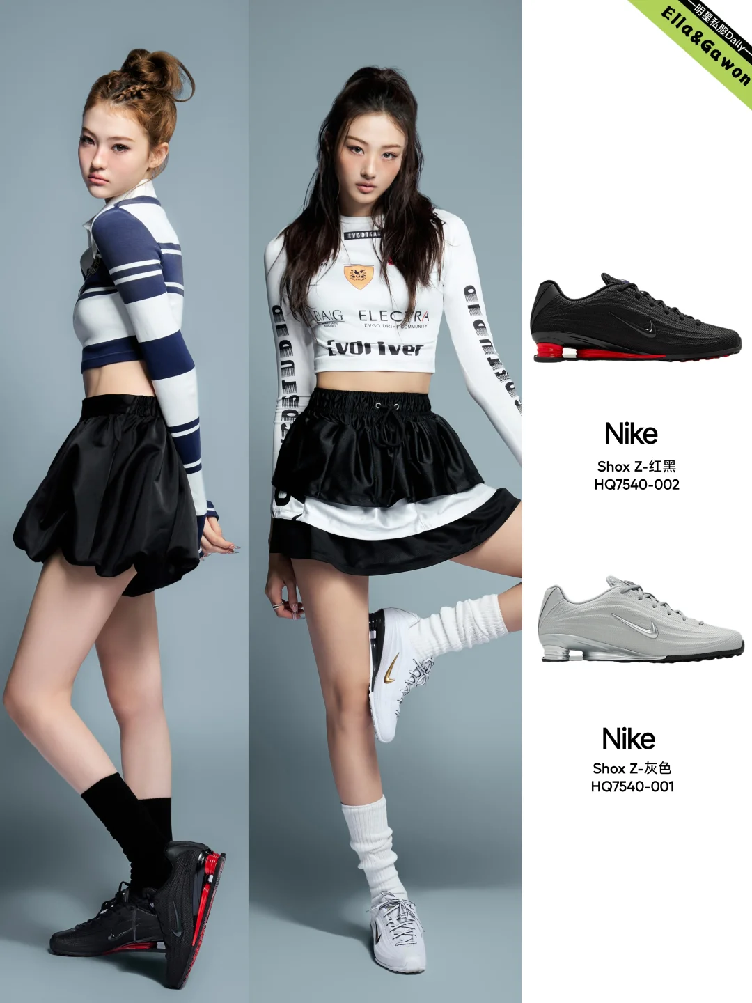 Nike Shox Z系列最近在中韩女明星圈真的是实火🔥 柳姐、MEOVV、卢昱晓的私服路透里几乎都能看到的身影! 从经典红黑到小众粉墨配色,每一款都很有辨识度✨低帮流线型加上少见的尖头设计,复古又利落,完全不怕撞款~最重要的是气柱鞋底不仅上脚轻盈舒适,还能悄悄增高,轻松拉长腿部线条👯‍♀️属于实穿与颜值并存的时髦鞋! 而 Shox 家族的另一位人气成员——Shox TL,最近也是持续出圈!TWICE 林娜琏在演唱会彩排穿的是银白渐变配色,机能酷感混搭裙装也毫不违和👀Ella 的机场 look 则演绎了爆款“黑武士”配色,百搭实穿、酷飒气场直接拉满~ 两款风格不同的 Shox,你更 pick 哪双?快来评论区告诉我吧!💕