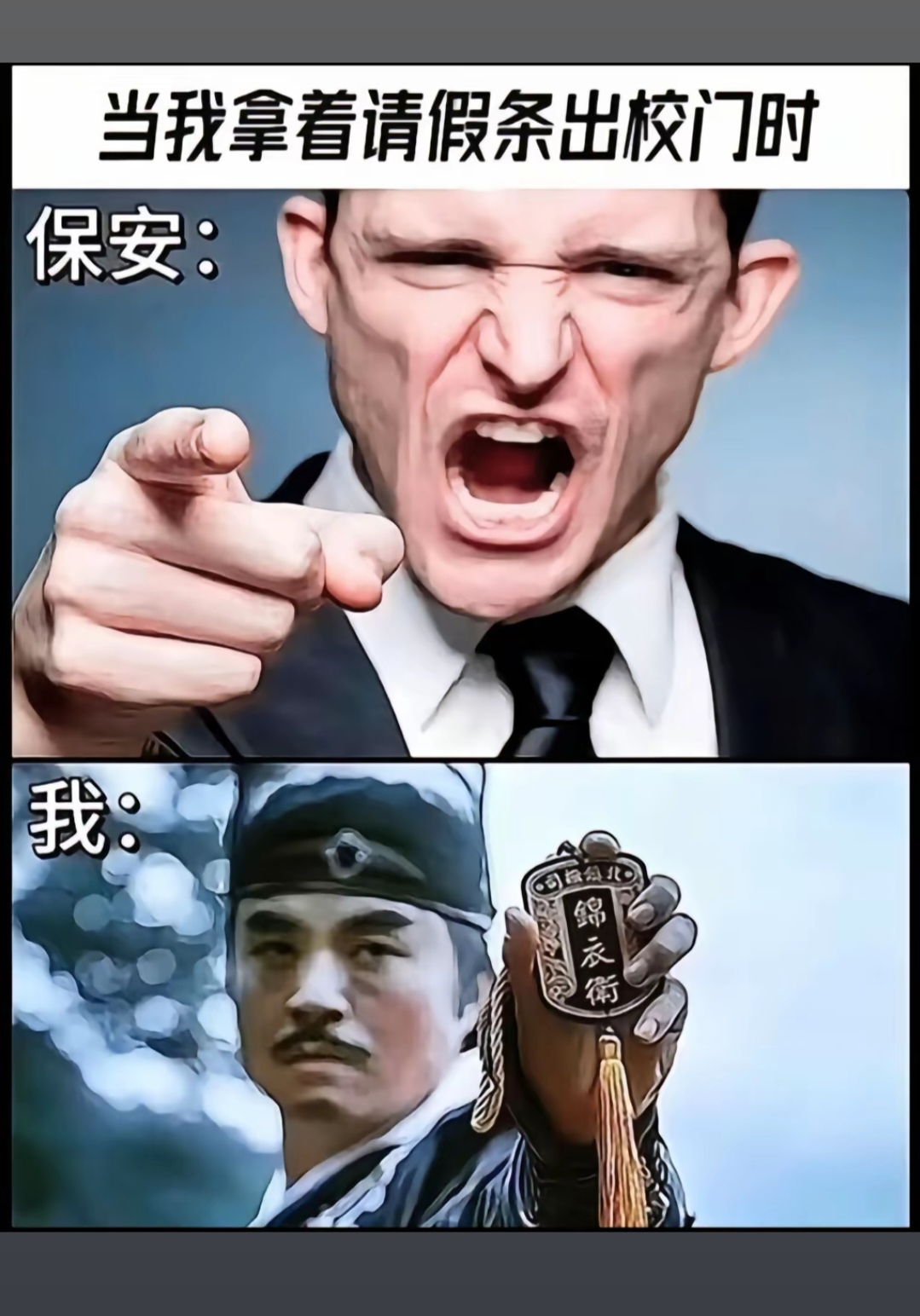 当我拿着请假条出校门时,就是这么牛,哈哈