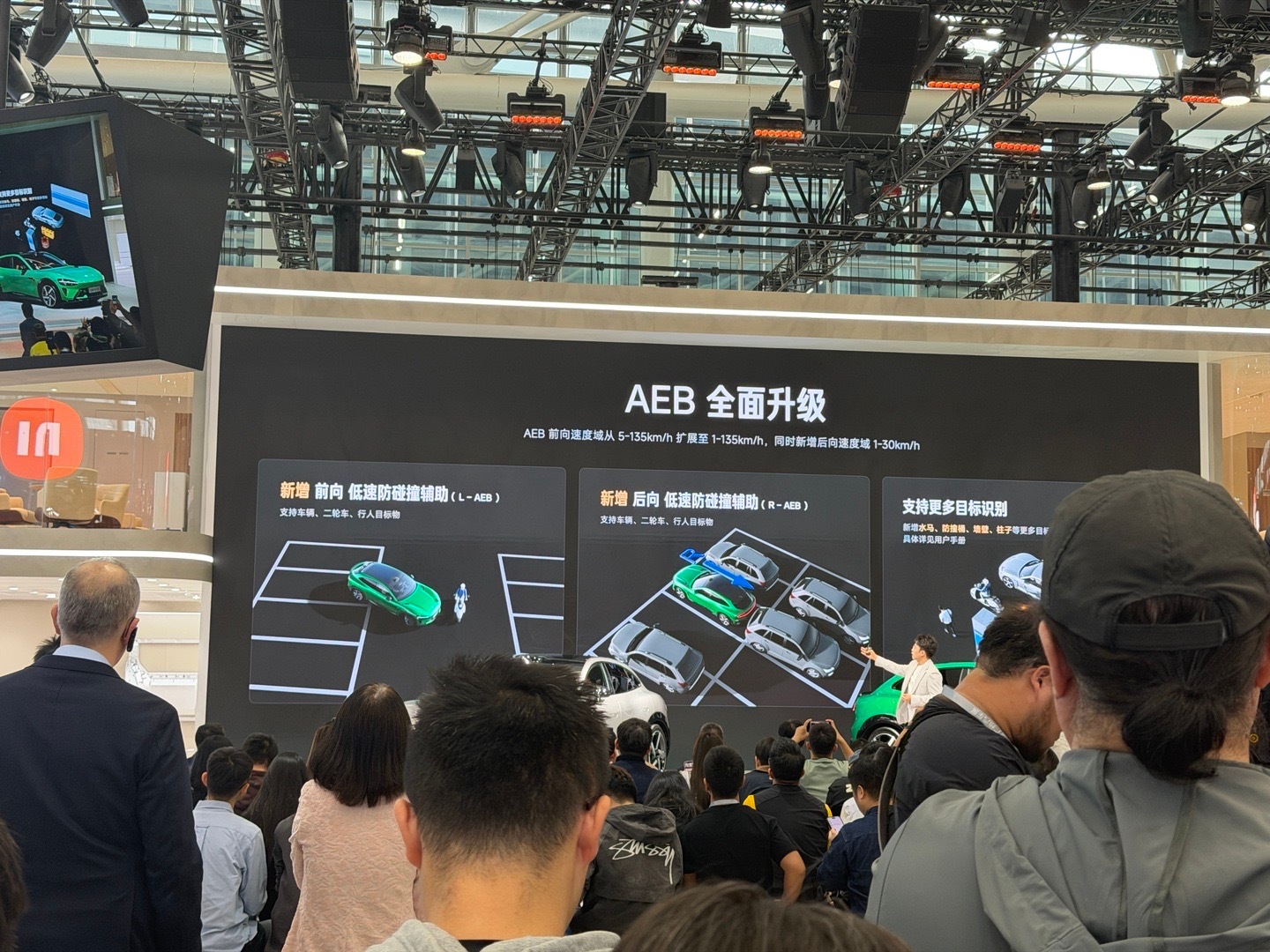 广州车展铂智7展台前面,热度上真的很高,展台前的人流已经挤到需要侧身通过了,还看