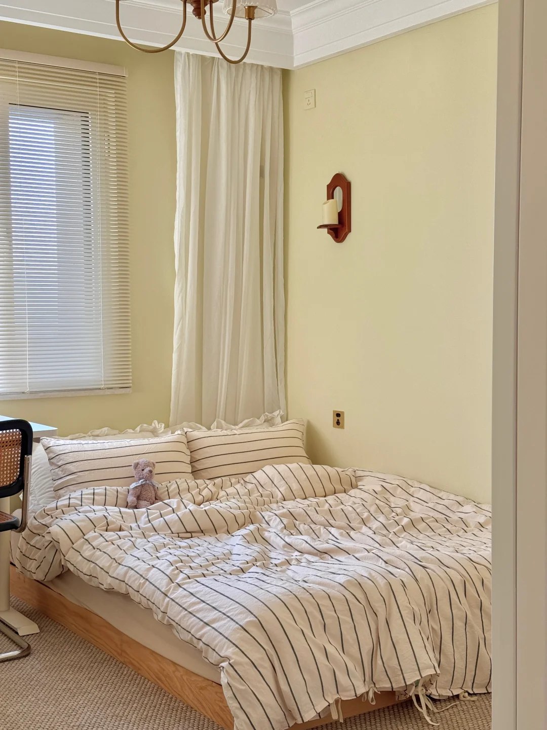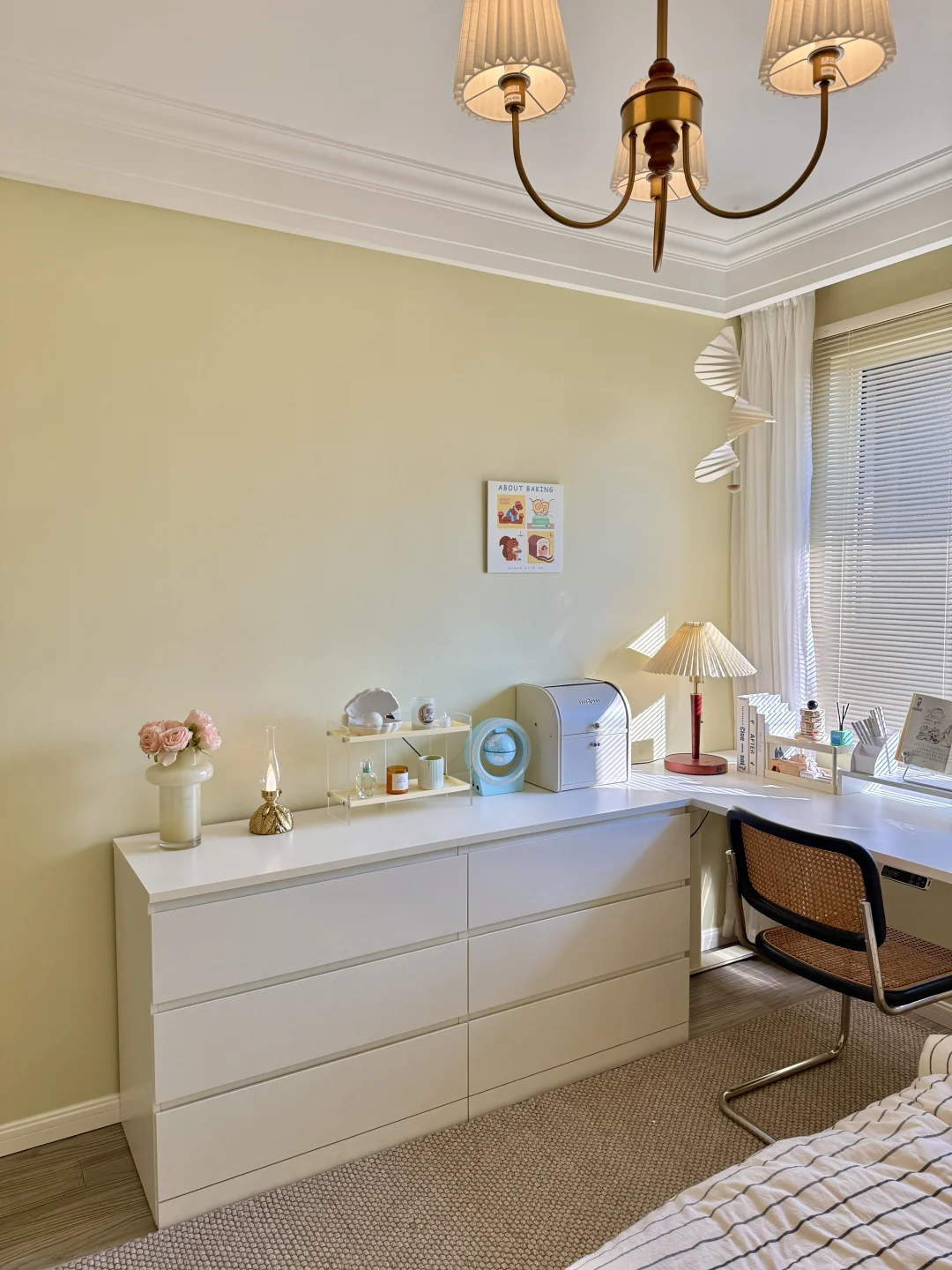 自从改造了这个小卧室 呆在房间的时间也变多了 10平米的小空间超温馨的 换上新床单仿佛拥有了新卧室 卧室的墙面颜色也是越看越爱 幸福感满满哒~