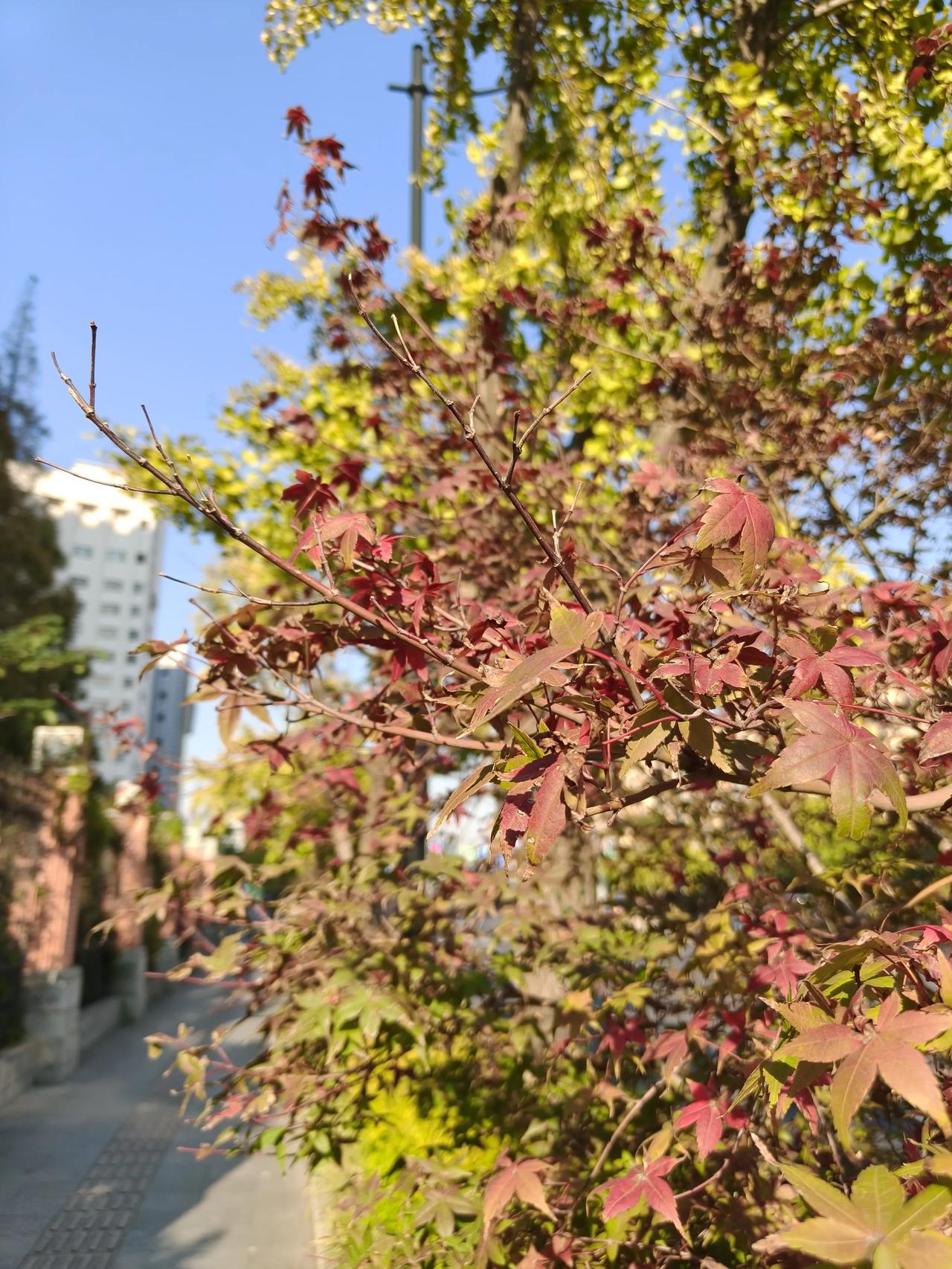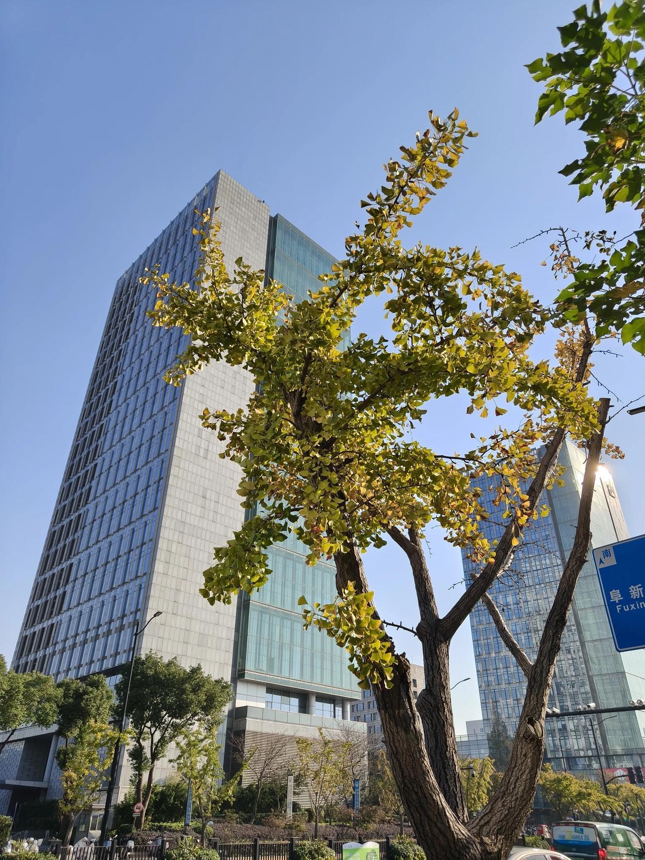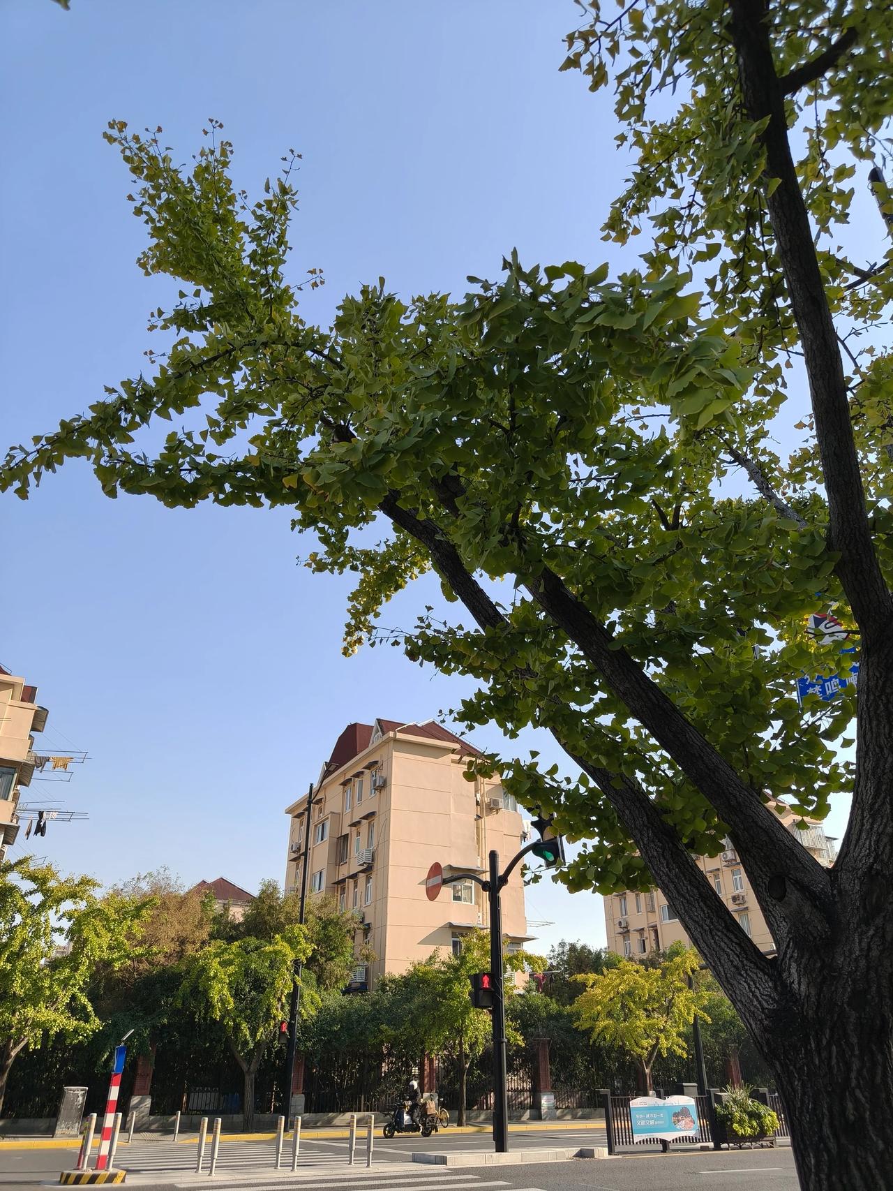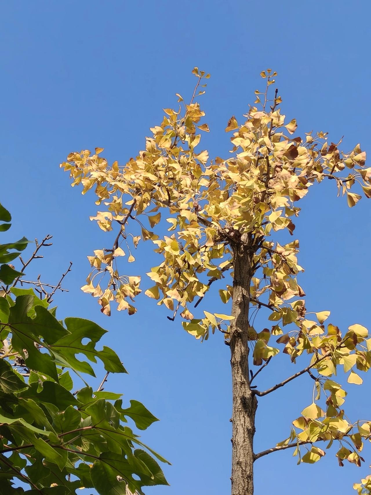 冬日午间散步随手拍实景图分享! 银杏树叶子还没黄透呢!