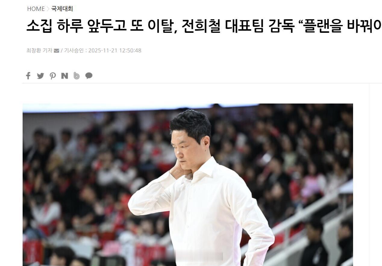 韩国男篮的阵容再次出现问题,有两人又伤了!20日,韩国男篮再迎坏消息,此前已经进入名单的宋教昌(图2和3为宋教昌)在联赛中上篮后伤到了右脚踝,崔俊龙则是膝伤复发。他们已经前往医院检查,正在等待结果。作为临时双主帅之一的全熙哲表示:“我认为我们需要改变计划本身,我们正在寻找兼具身高和过渡能力的球员。我们已经确定了替补球员的方向,但首先我们需要获得宋教昌和崔俊龙的检查结果。当我们接到协会关于检查结果的电话后,我们将尽快讨论并决定替补球员的人选。”韩国男篮在11月4日直接公布了12人集训名单,不过12日,柳基相因伤被文正贤替换。他们原本计划21日集结,可是,集训前一天,再次有两人受伤。按照计划,他们这几天集训,25日会和安阳进行一场练习赛,26日前往北京。韩国队此前公布的世预赛第一窗口期名单:(机翻+综合)李政贤、边俊亨、梁俊锡、文正贤,李贤重、崔俊龙、宋教昌、安英俊、李佑锡、李元锡、河润基、李承铉