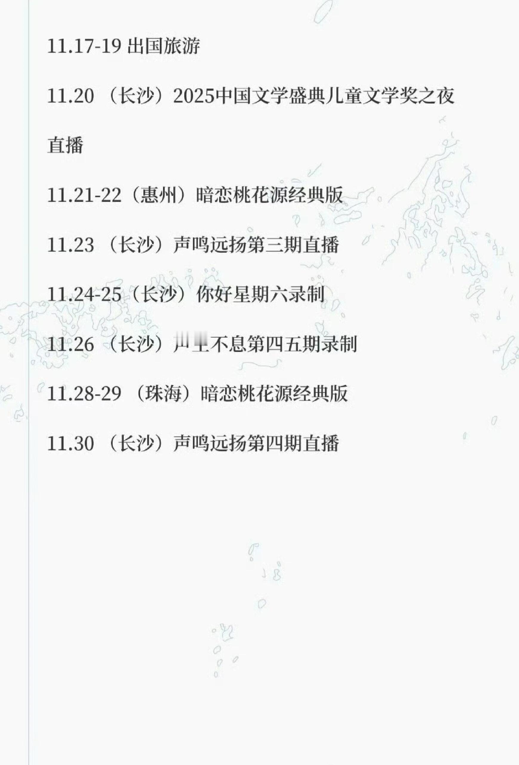 何炅11月行程汇总30天工作22天,也就是休息了8天,相当于我们普通人一个月双休