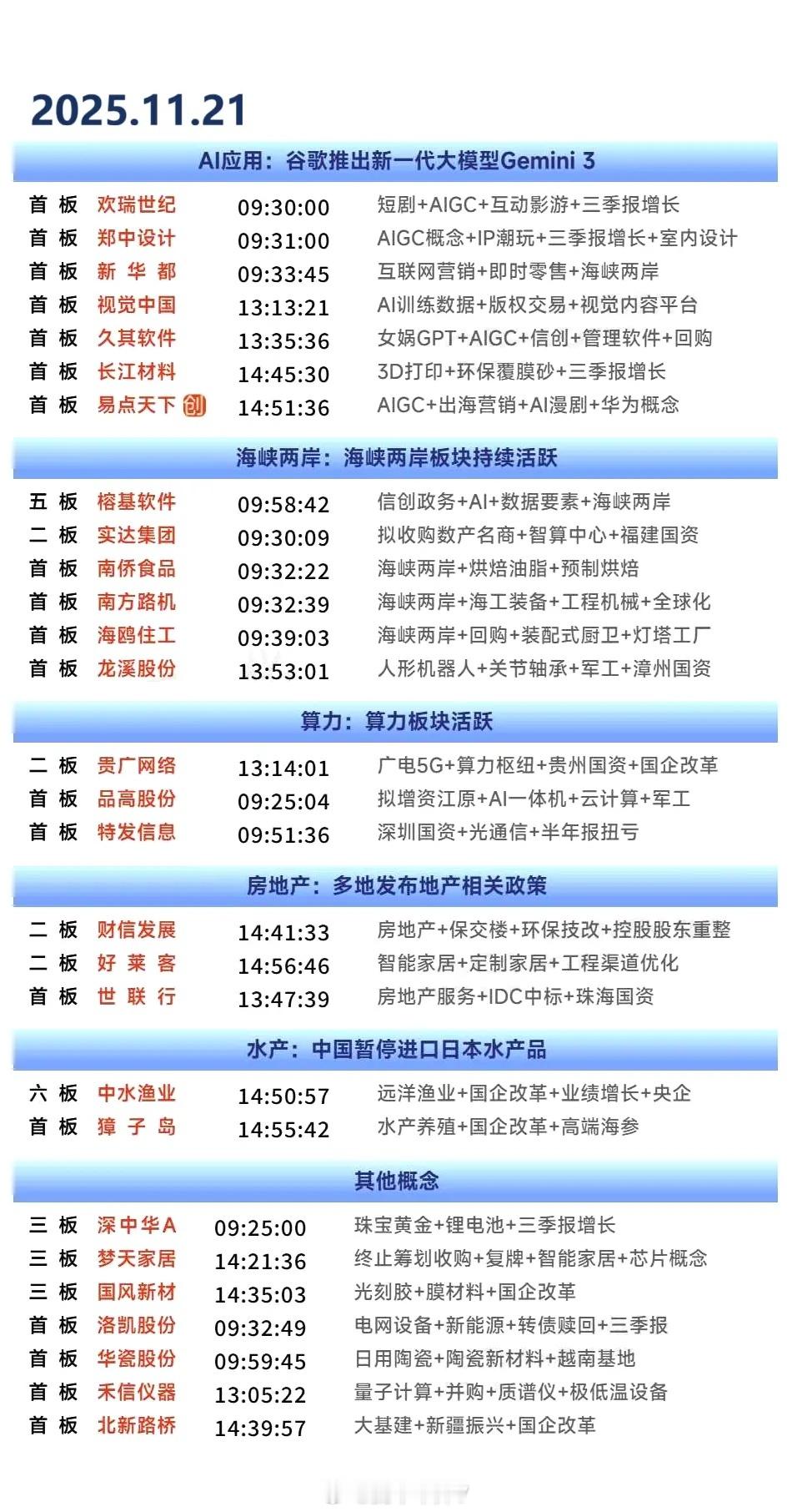 11月21日涨停复盘 | 指数大幅回调,仅水产养殖、AI应用等较为强势