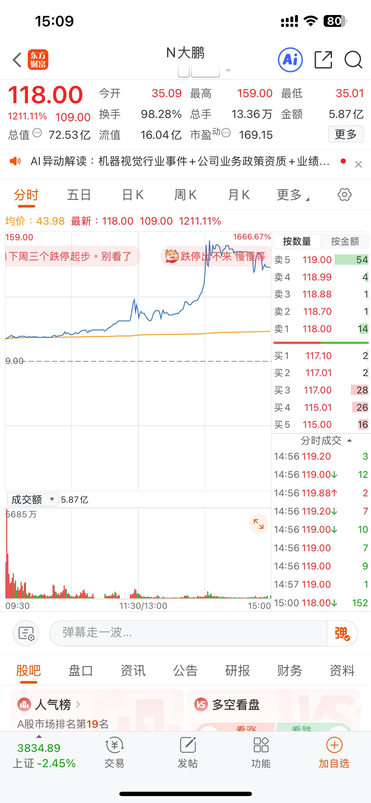 今天的新股涨幅真够疯狂的,换手率几乎 100% 了!