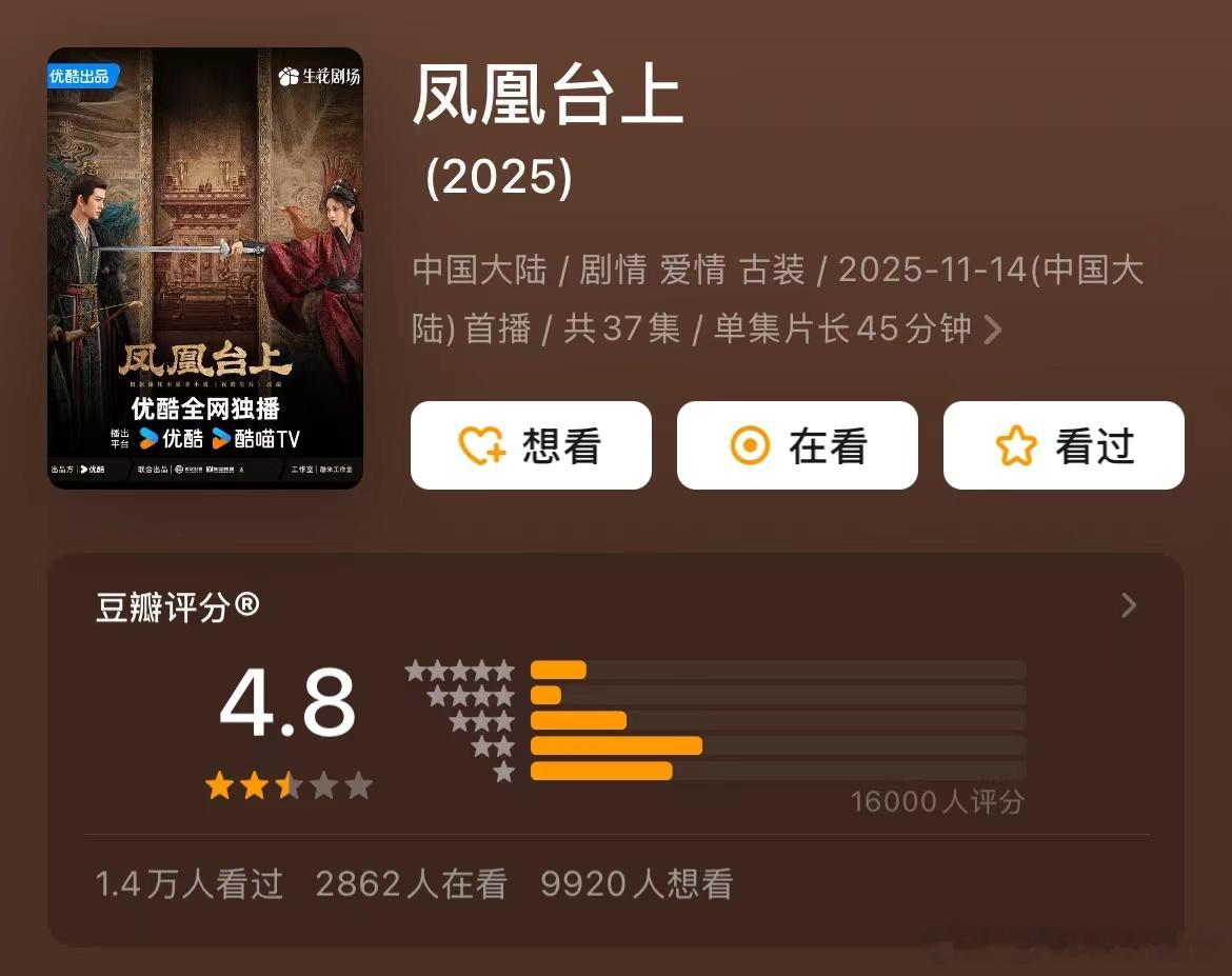 分数低就算了,打分人数也这么少,今天幕后都跑出来发风了,这剧算很扑了吧。