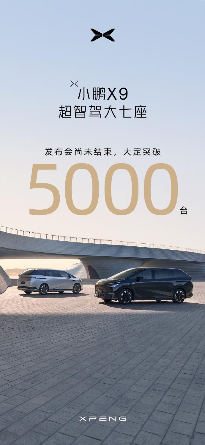 小鹏X9超级增程1小时打破小鹏X9历史全天大定数。我看了下去年发布当天宣布的大定是5000(还不是首日,只是发布会结束前),也就是说这次 X9增程一小时大定数至少高于 5000 了。
