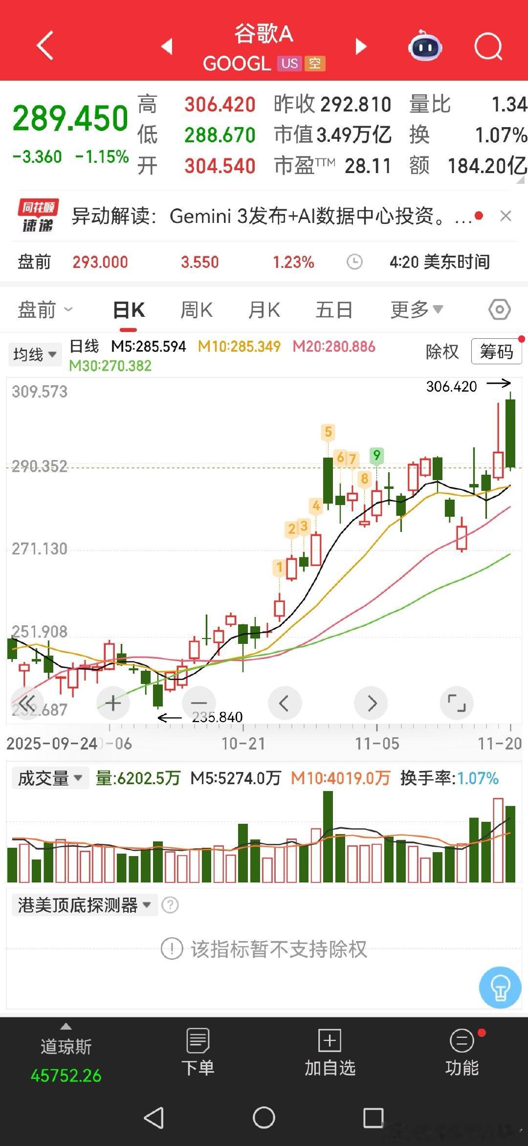 谷歌每天都是盘前涨。国人受不了只能追。开盘后又高开低走,套住第二天盘前继续大涨收回跌幅,想买又只能追,追了以后又低开高走套住所以最好的买入时机是尾盘,但尾盘国人都在睡觉,mmp