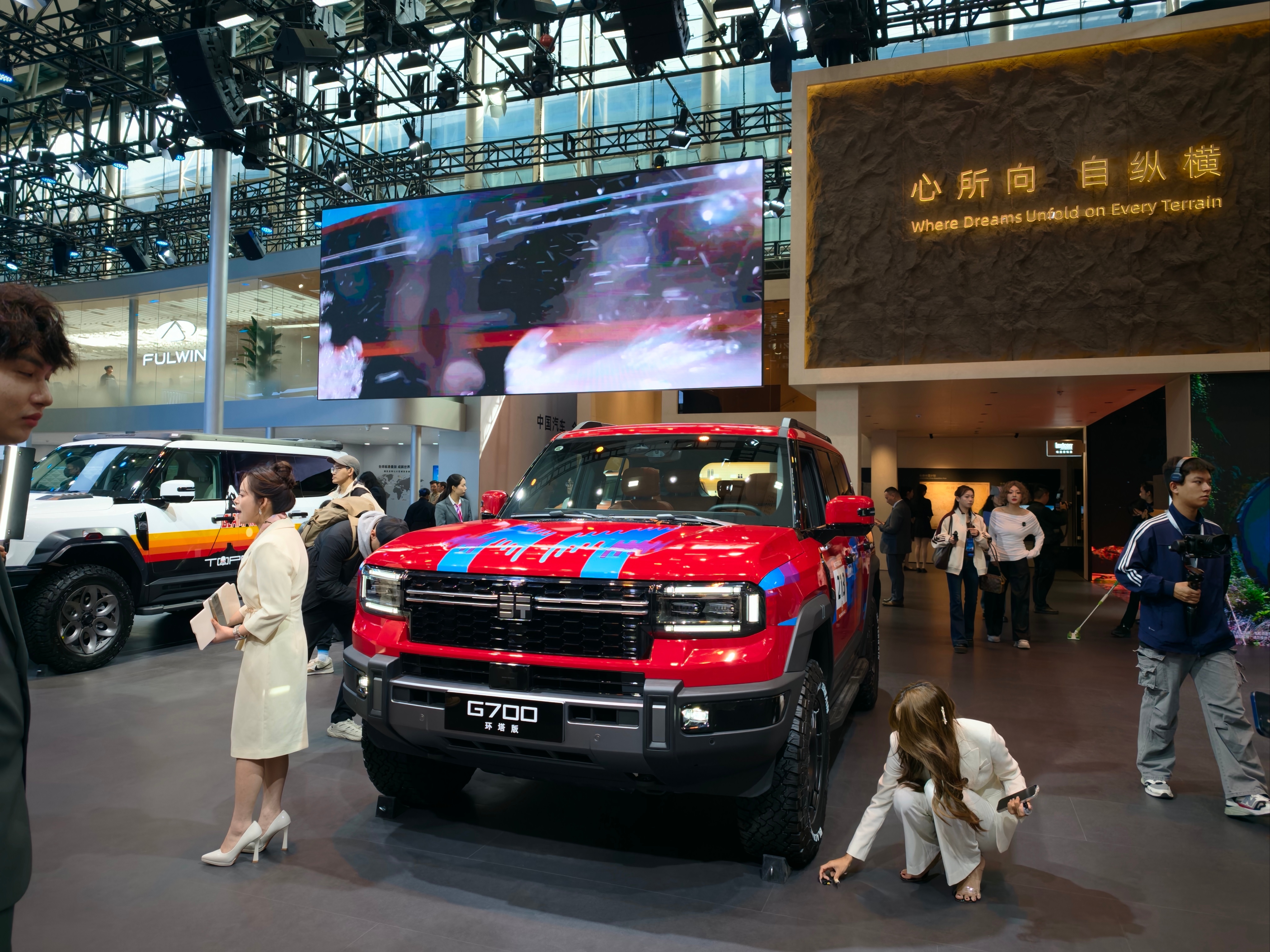 逛到了坦克、智己、奇瑞到展台,19.98万元起的坦克 300,32.28 万起的智己 LS9 ,32.99 万起的奇瑞纵横 G700 环塔版,三款国产硬货,都很帅啊