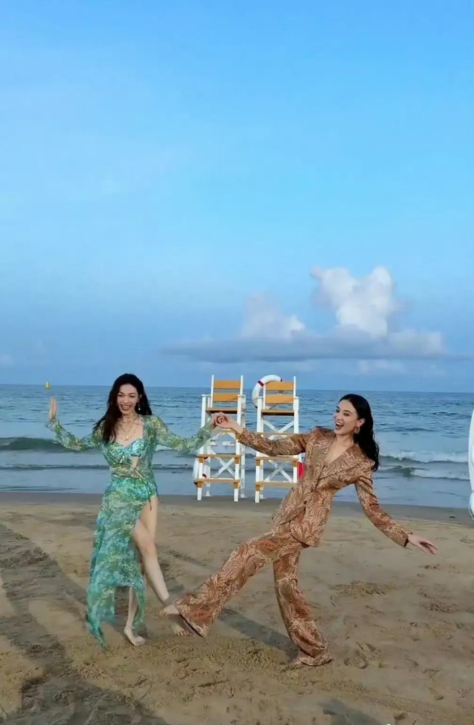 宋佳钟楚曦在海边这是彻底放飞自我了吗,两个大长腿美女在一起,身材简直绝了
