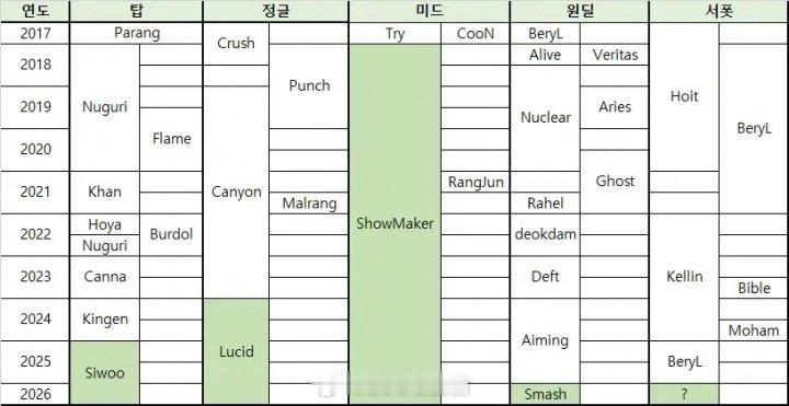 一人一城!DK历史队员一览:Showmaker即将随队征战第九个赛季LCK赛区DK俱乐部目前选手合同已确定三席,Siwoo/Lucid/Showmaker三人合同至少都签到2026年底。DK建队以来的历史队员名单如下👇Showmaker从18年加盟,即将迎来随队征战的第九个赛季。