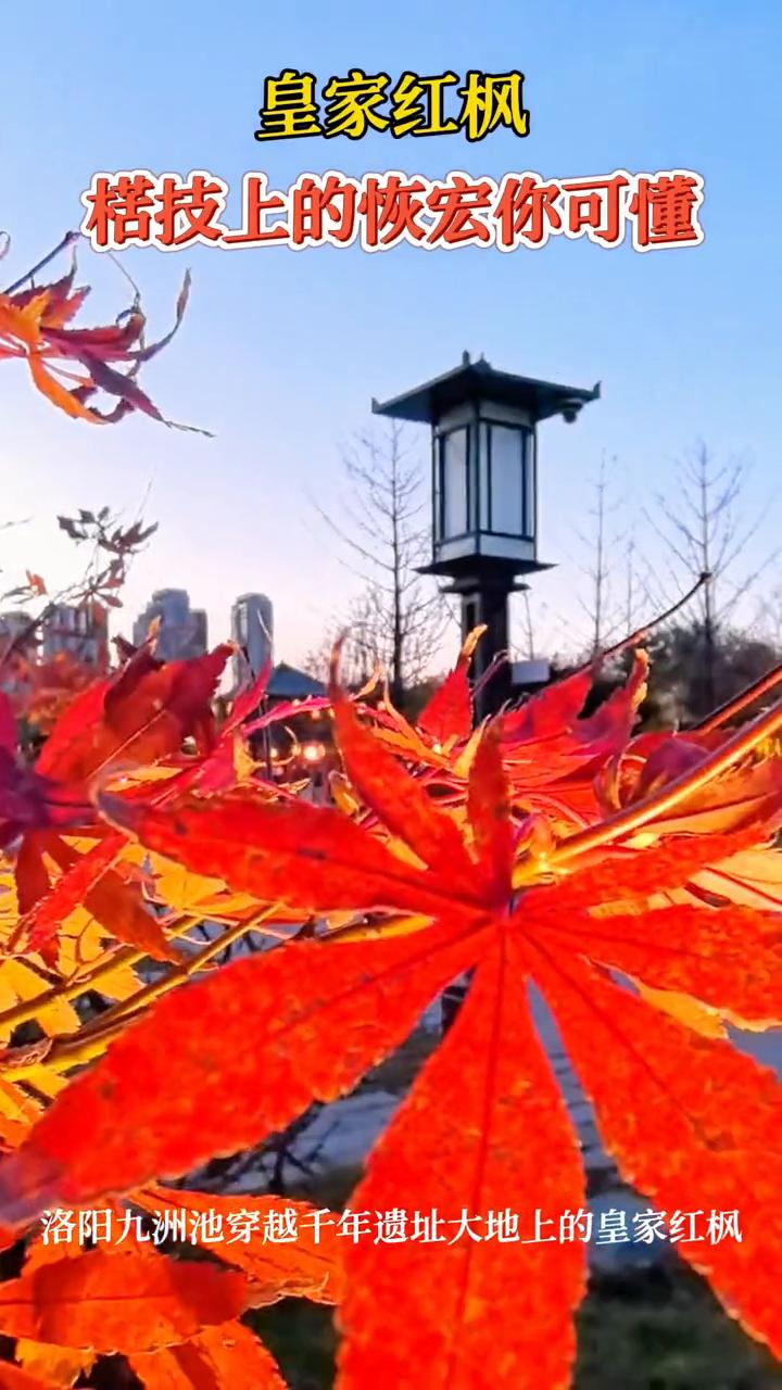 皇家红枫,技上的恢宏你可懂。 洛阳九洲池穿越千年遗址大地上的皇家红枫。