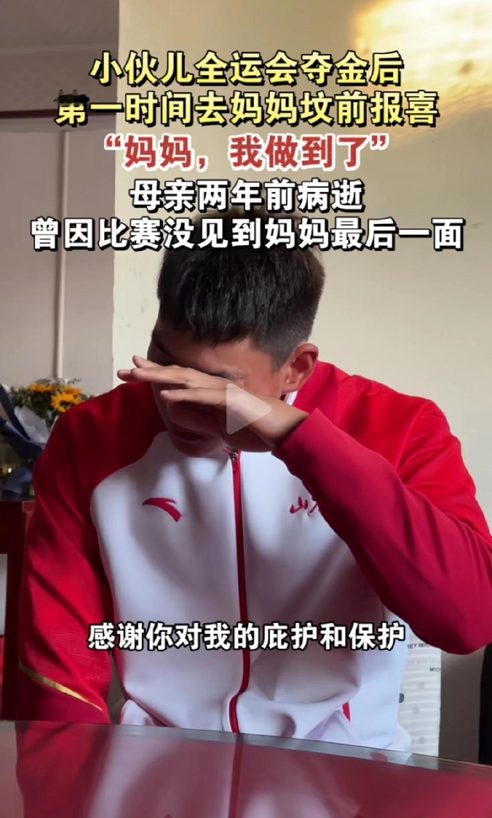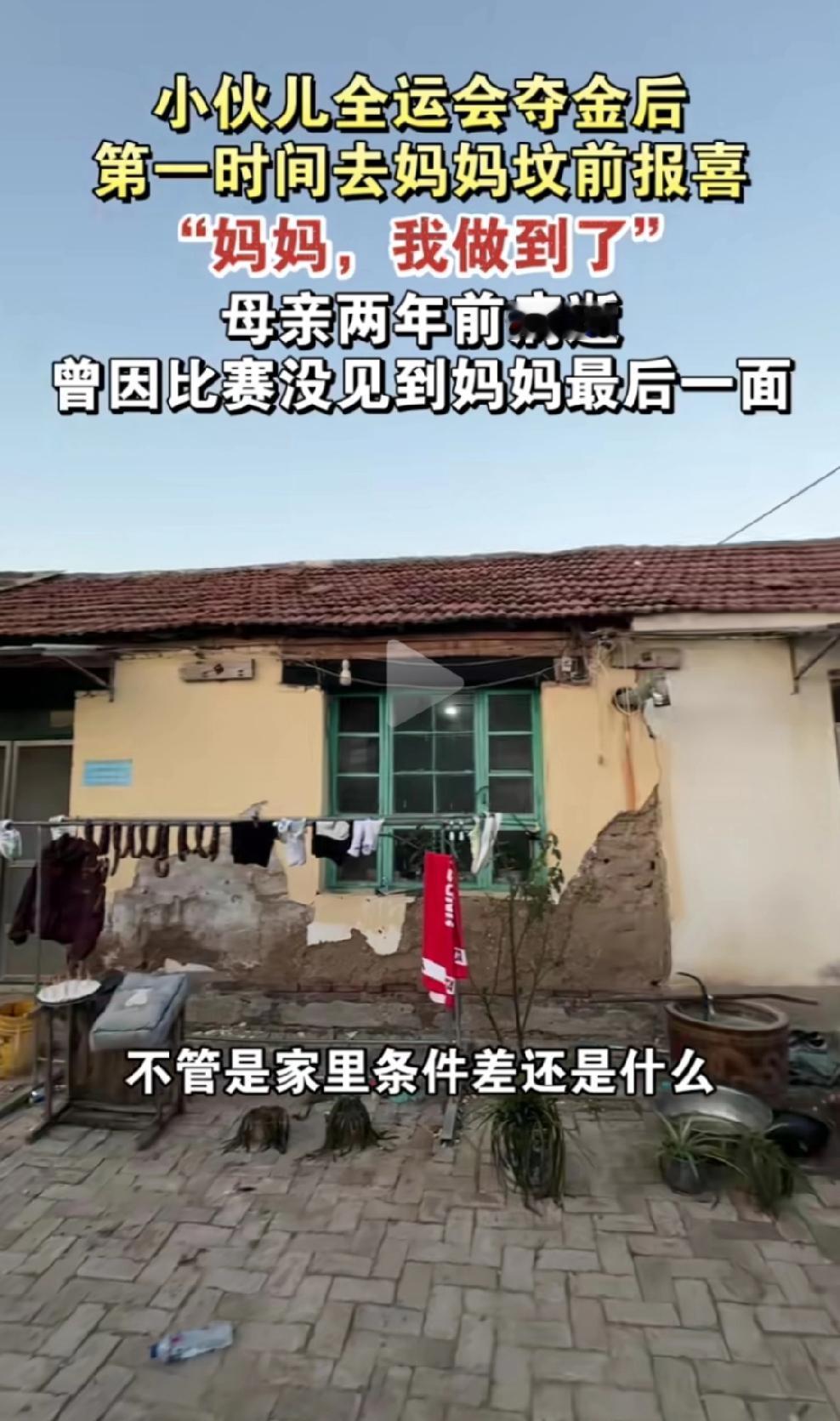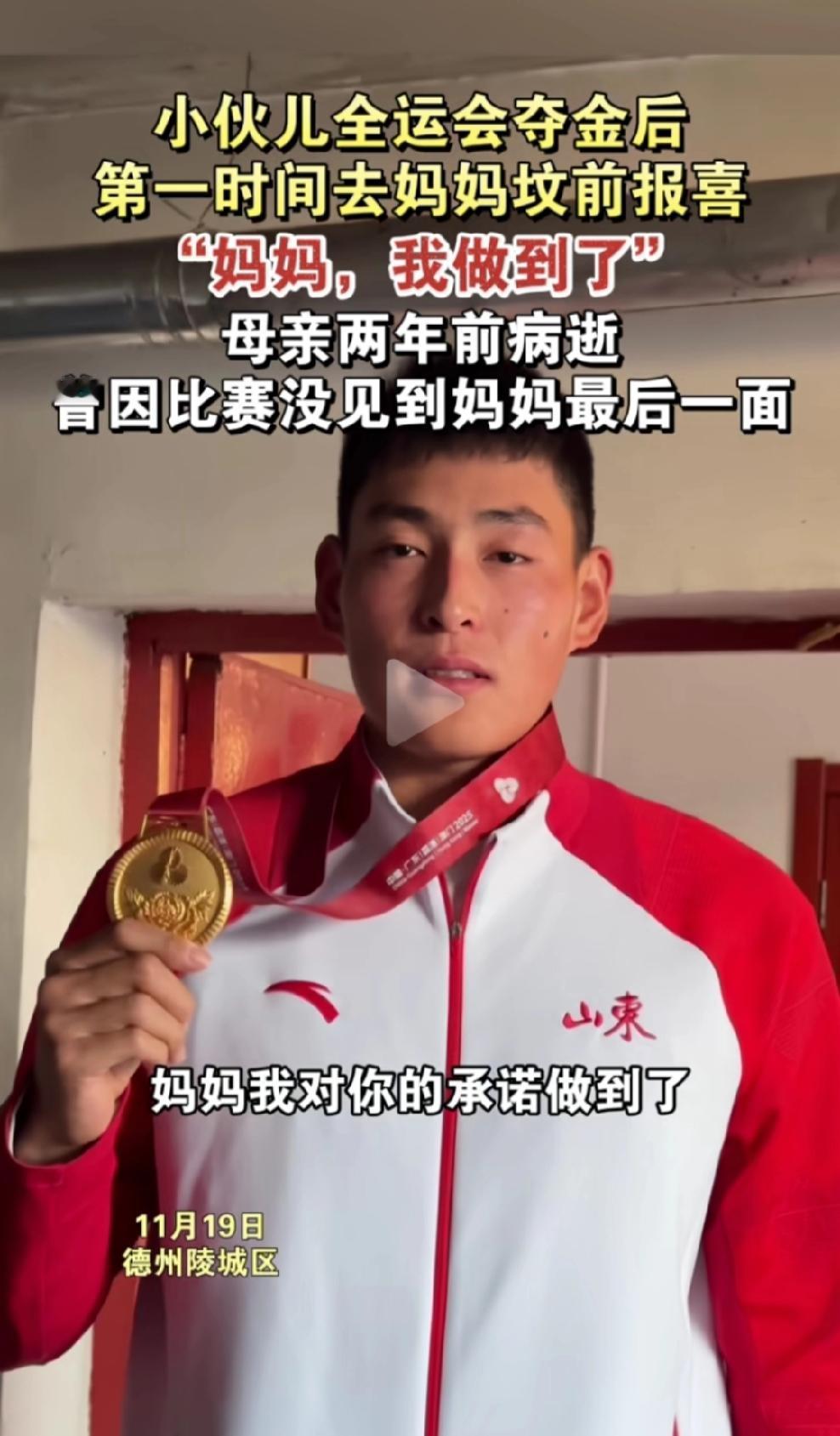 11月19日德州陵城区,赛艇冠军吴凯琦夺冠后,第一时间去妈妈坟前报喜这事儿,真的给我看破防了! 吴凯琦在第十五运全运会赛艇男子八人单桨有舵手项目夺冠,他哭着说对妈妈的承诺做到了,感谢妈妈的庇护。他家里条件不是很好,墙皮都掉了,爸妈一直全力支持他训练,尤其是妈妈,生病时也从不把痛苦的一面展现给他。可他却因为比赛,没能见到妈妈最后一面,这该是多大的遗憾啊! 子欲养而亲不待,我们总是为了梦想、为了生活忙碌,有时候就忽略了身边最亲的人。