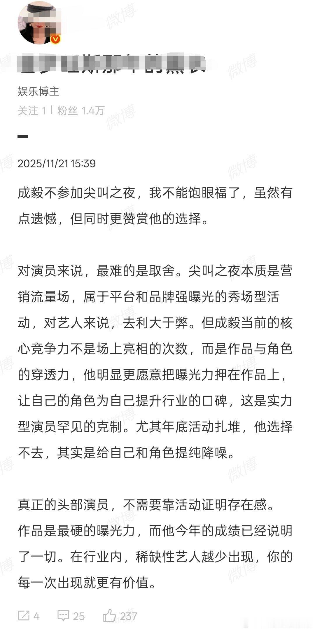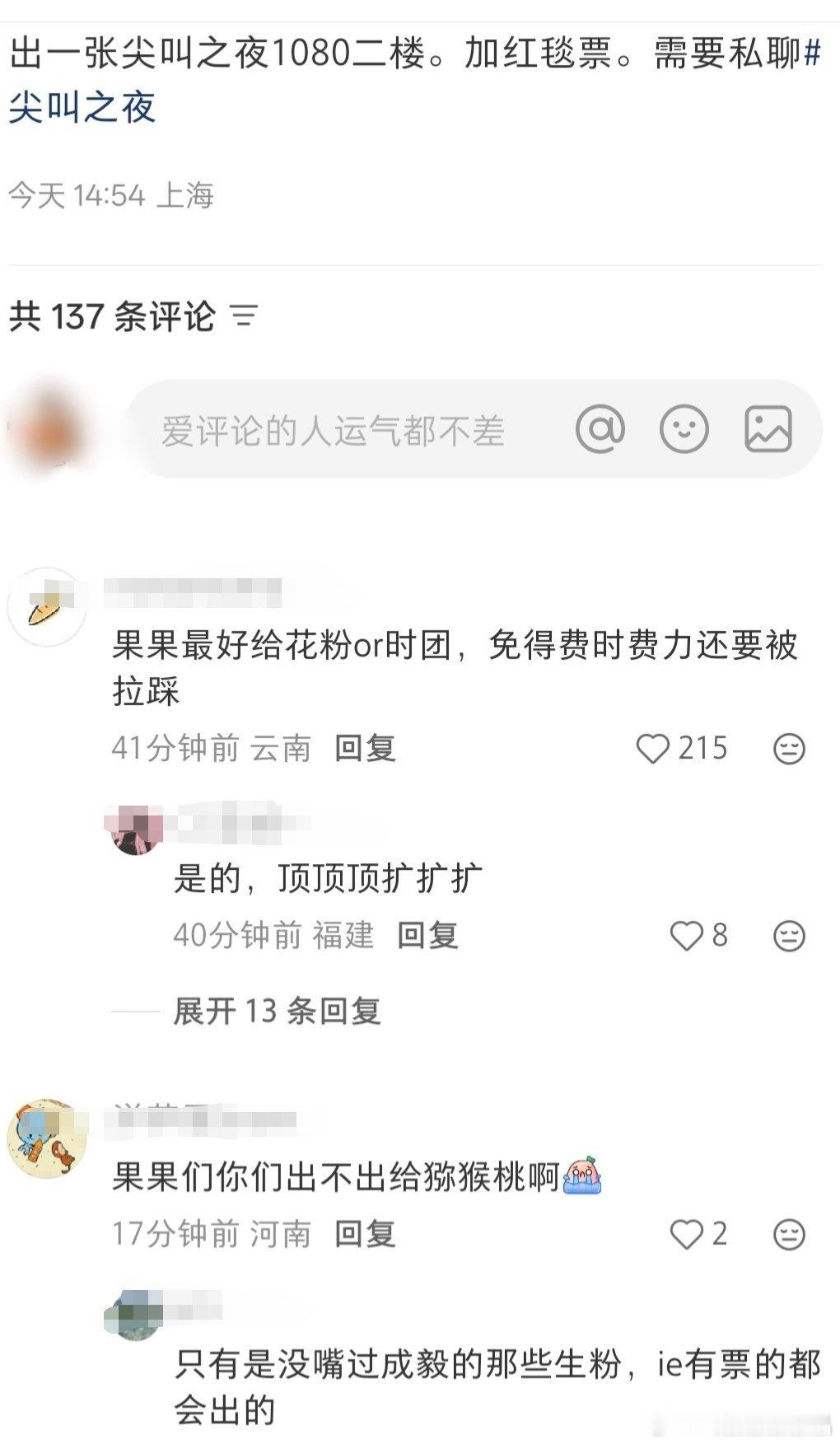 按照她自己19号的逻辑,老e今年的剧播的不好,拿不到好的奖,所以不去了,后面是挽尊。 他家的票只出给花粉,还要给fsh和天地打分才能拿