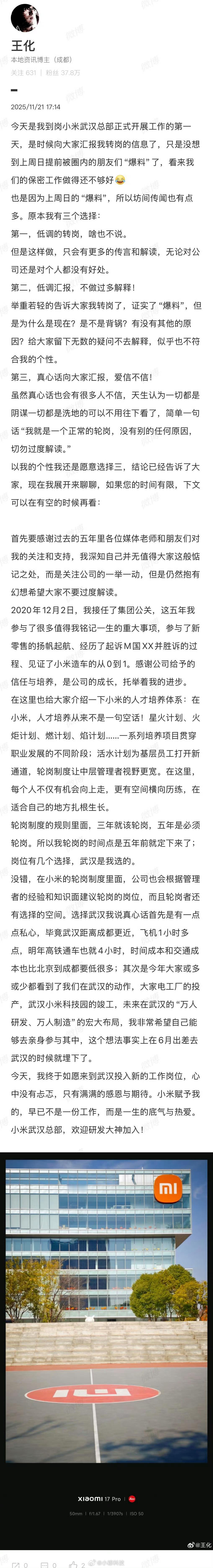 原小米公关部总经理转岗到了武汉(算不算下放?),不过本人说是自己选择地区并且王化自己亲自调侃小米的保密做的不好,这可不是网友的茶余饭后的调侃,公关部负责人都承认保密不行,那爆料那些谁能保密?王腾泄密也很正常吧,企业基因了