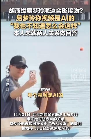 易梦玲一边说视频是AI合成的,疑似否认和胡彦斌的恋爱关系,另一边,却有网友拍到胡彦斌和易梦玲现身机场,这打脸不要太快了。 最近,胡彦斌和易梦玲在海边的亲密视频,让大家相信两人是恋爱了,就在网友纷纷送祝福时,易梦玲在接受采访时却称,海边视频是AI合成的,还称好好笑,疑似是网友乱点鸳鸯谱,不过就在网友求证两人是否都在马代时,易梦玲却挂断了电话。 就在网友一头雾水时,又有网友在机场发现了两人前后脚过安检,不知这个机场,是否是马尔代夫的机场,如果是,两人的恋爱应该就实锤了。 胡彦斌1983年出生,今年已经42岁了,比易梦玲大16岁,1999年出生的易梦玲,这几年事业发展很不错,综艺影视忙不停,从一名自媒体博主走到今天也是很不容易,不知女方是不是担心影响事业,才否认恋情。 从恋情被公开到易梦玲否认海边亲密互动,胡彦斌一直保持沉默,截至目前没有任何发声。