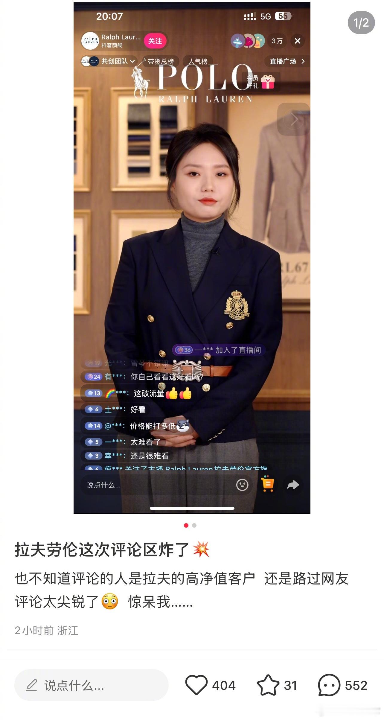 李雪琴在拉夫劳伦直播间,评论区都在说老钱变老铁