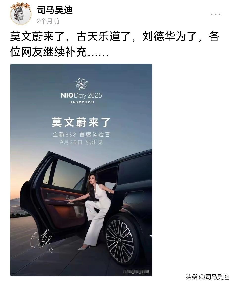 新势力品牌全体起立!两个月我司马吴迪的预言有多准,看了莫文蔚来了,我马上预判古天乐道了,结果真的来了,网友们直呼内行!
