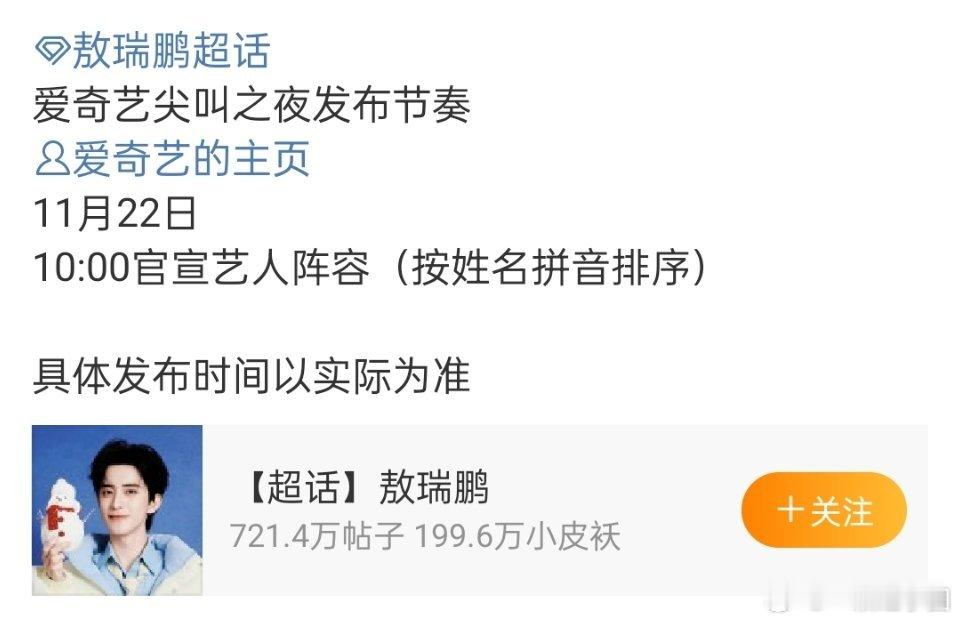 敖瑞鹏明天官宣爱奇艺尖叫之夜!!