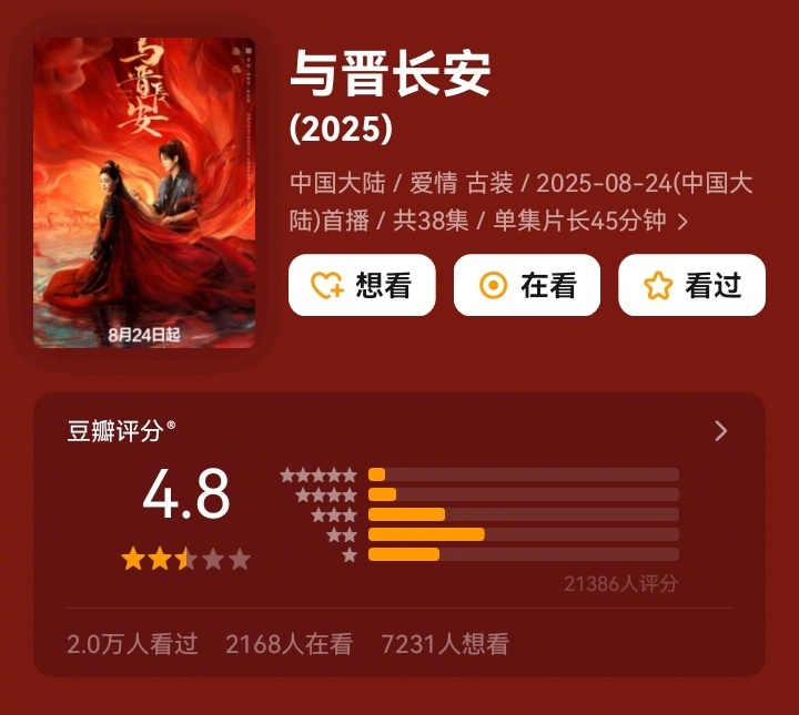 任嘉伦、彭小苒《凤凰台上》居然4.8分俩主演明明都在古装舒适区,口碑咋这么低?这下直接和《与晋长安》凑成“难兄难弟”了