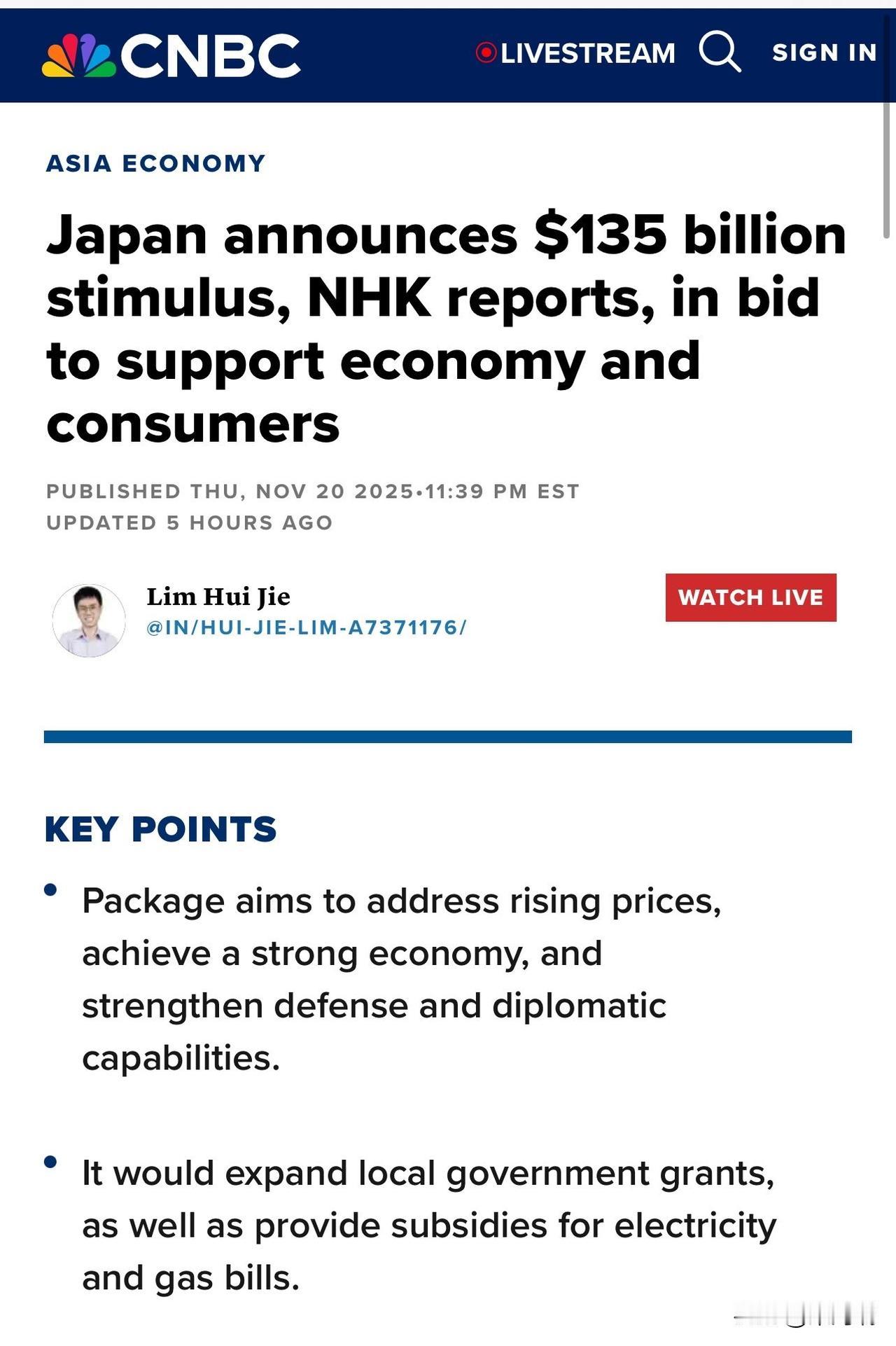 日本刚刚启动了一项1350亿美元的市场刺激计划 日本批准了一项价值1350亿美元的21.3万亿日元的经济刺激计划。 日本国内生产总值约为 4.2 万亿美元,仅此一项就占其整个经济的 3% 以上。 日本目前已持有价值1.1万亿美元的美国国债。 日本消费时,流动资金不会留在日本境内。 它迅速打入全球市场。 该方案旨在缓解家庭、企业、能源和通货膨胀问题。 日元疲软和经济增长缓慢迫使日本采取大规模扩张策略。 这个刺激方案。简单来说,就是印钱放水。